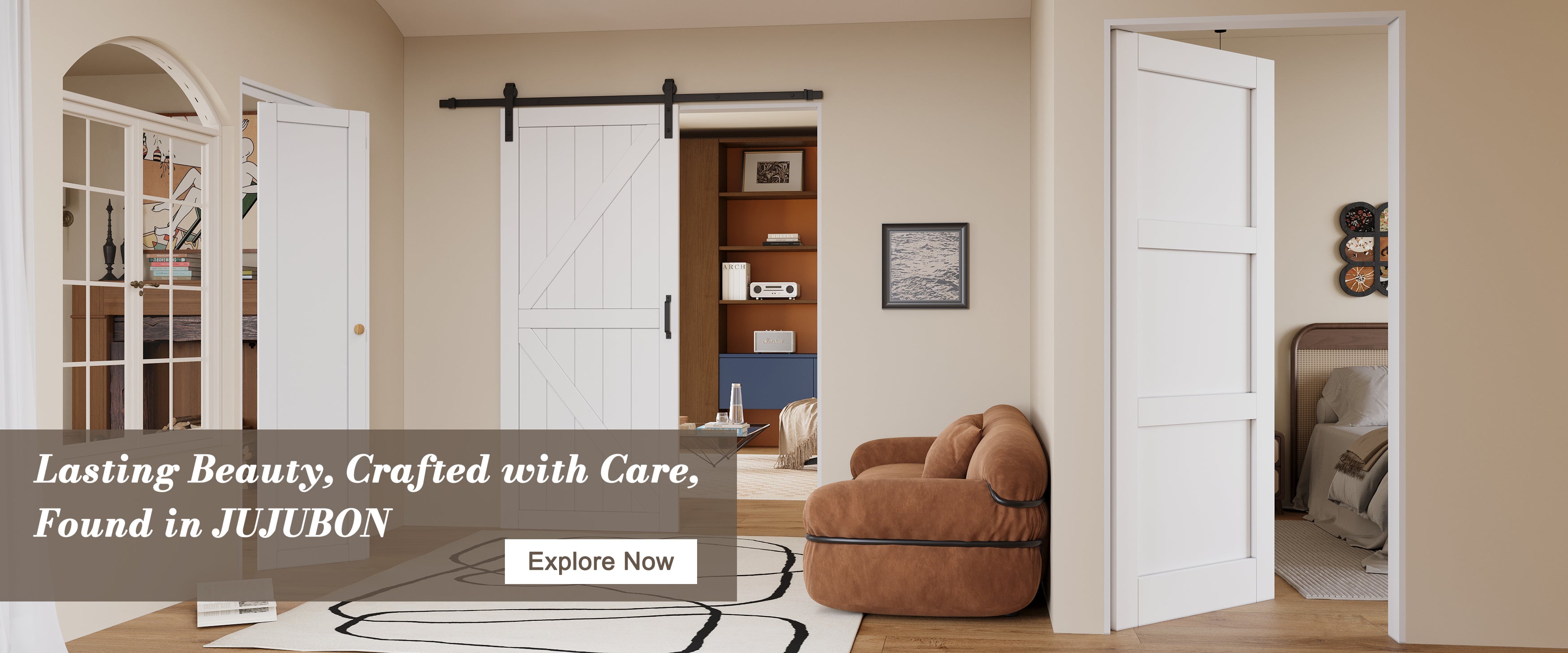 Jujubon's chic bifold barn doors are designed to save space and adapt...
