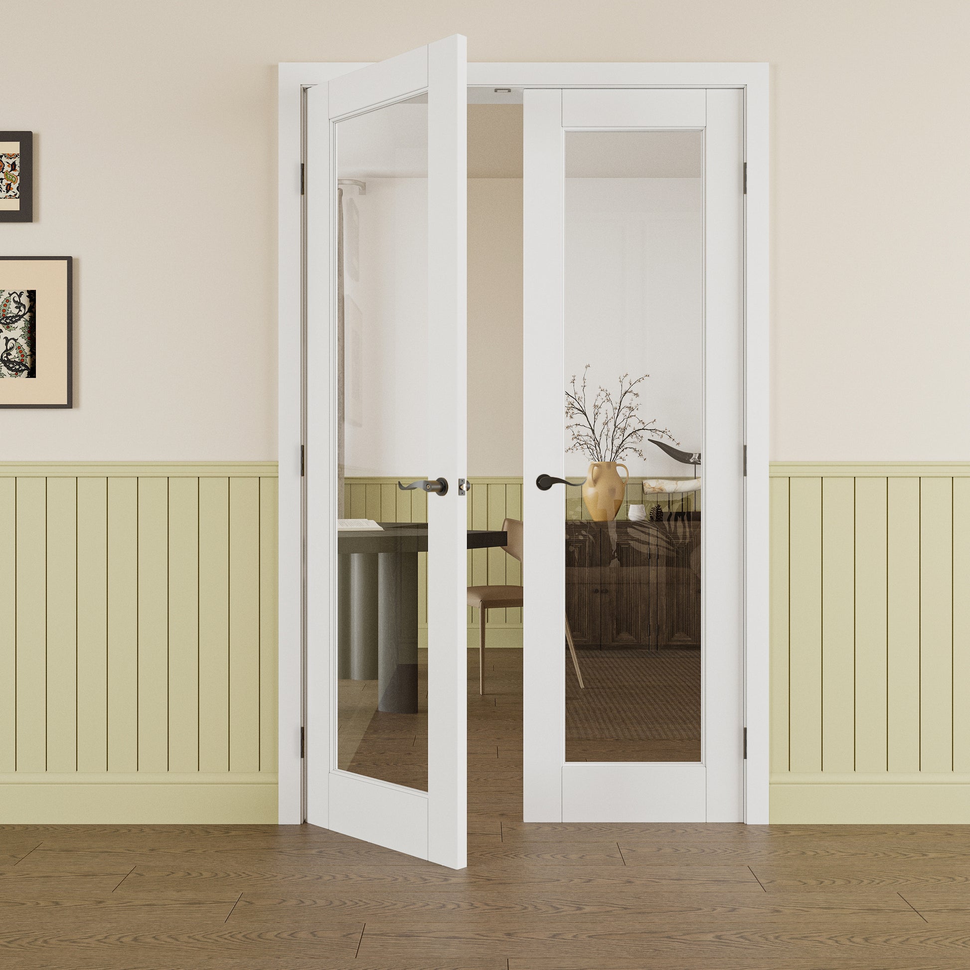 JUJUBON Prehung French Door, 1-Lite Tempered Clear Glass Door Slabs with Jamb, Black Hinges, 4 Levers & Latch, Solid Core Interior Doors, Pre-Finished & Paintable, MDF Double Doors Interior