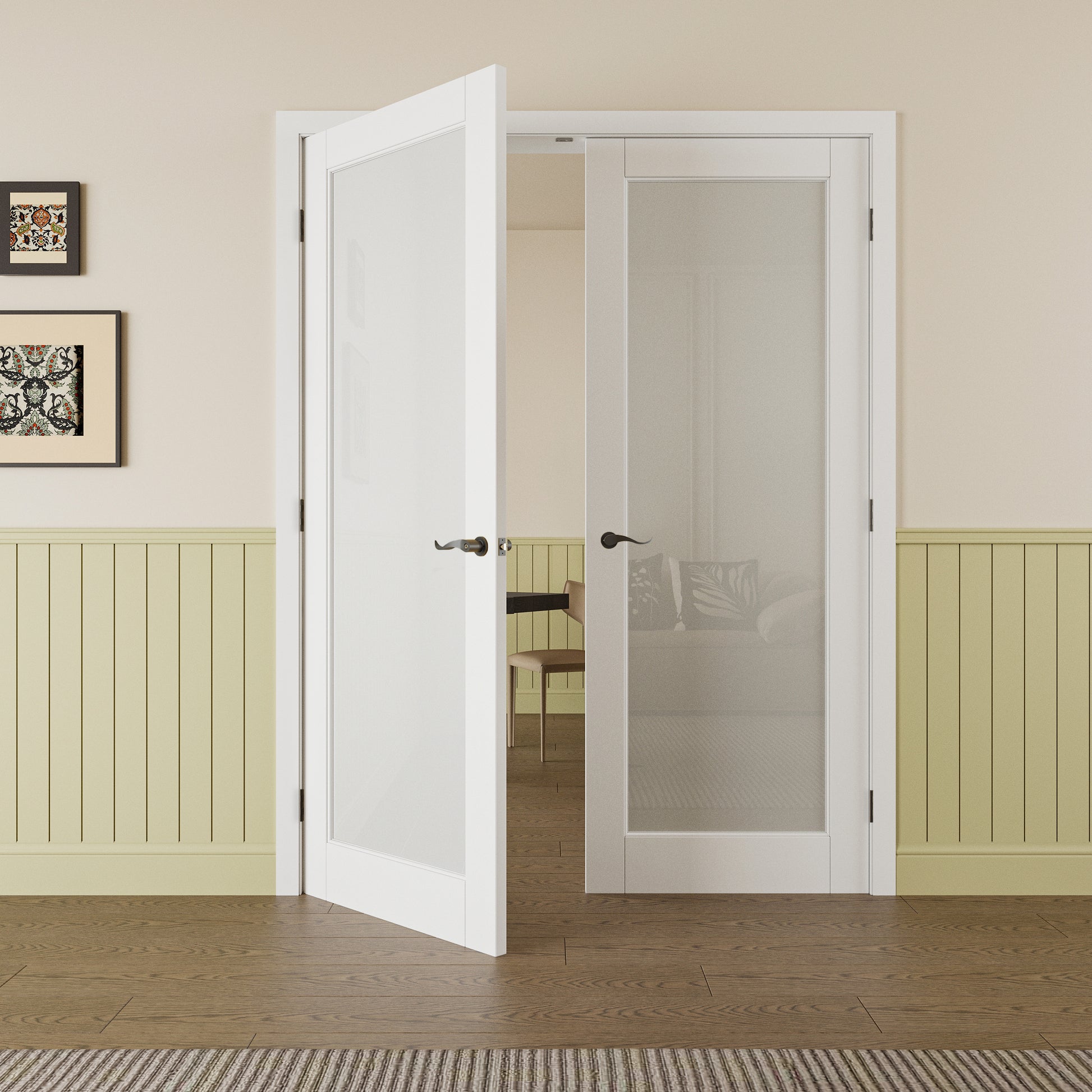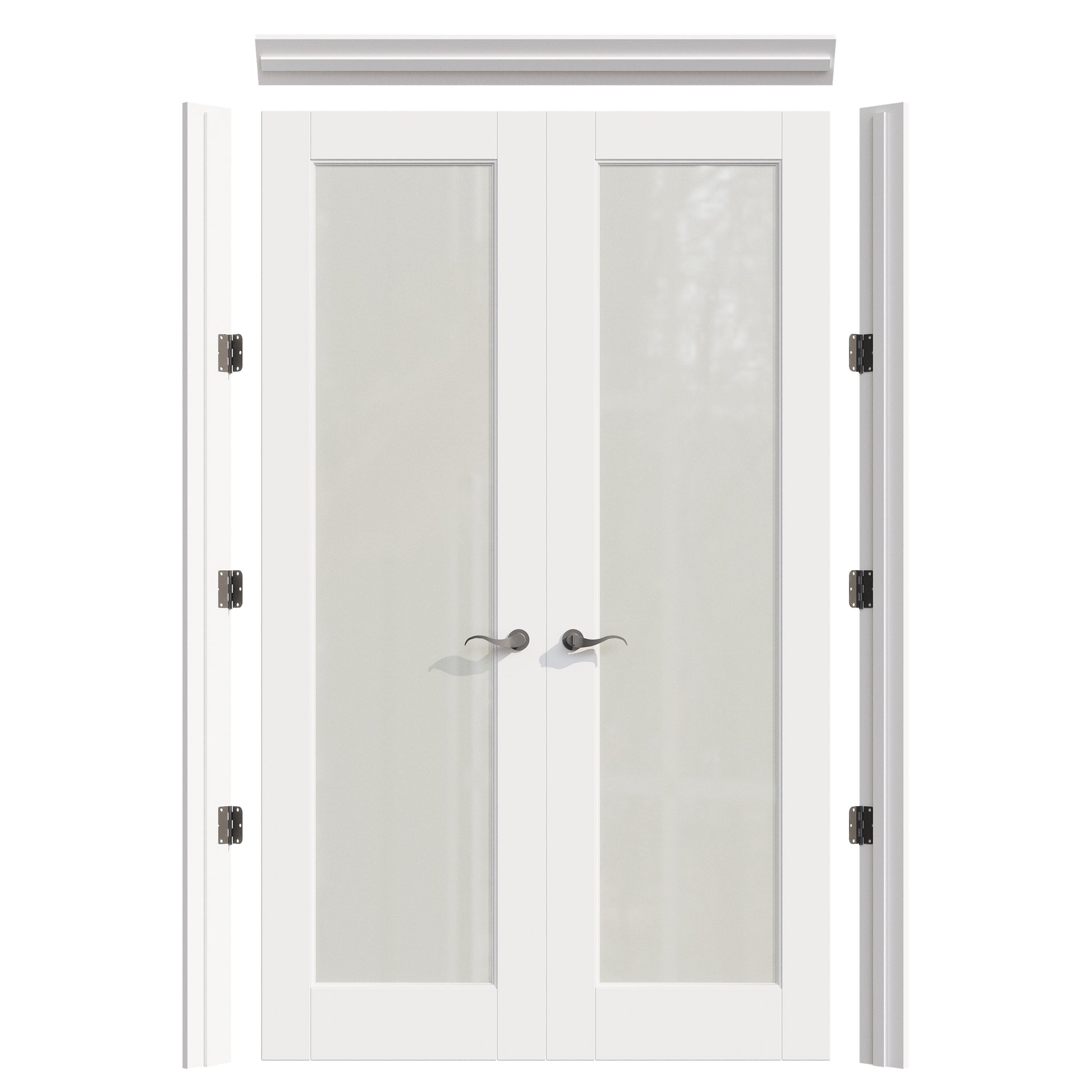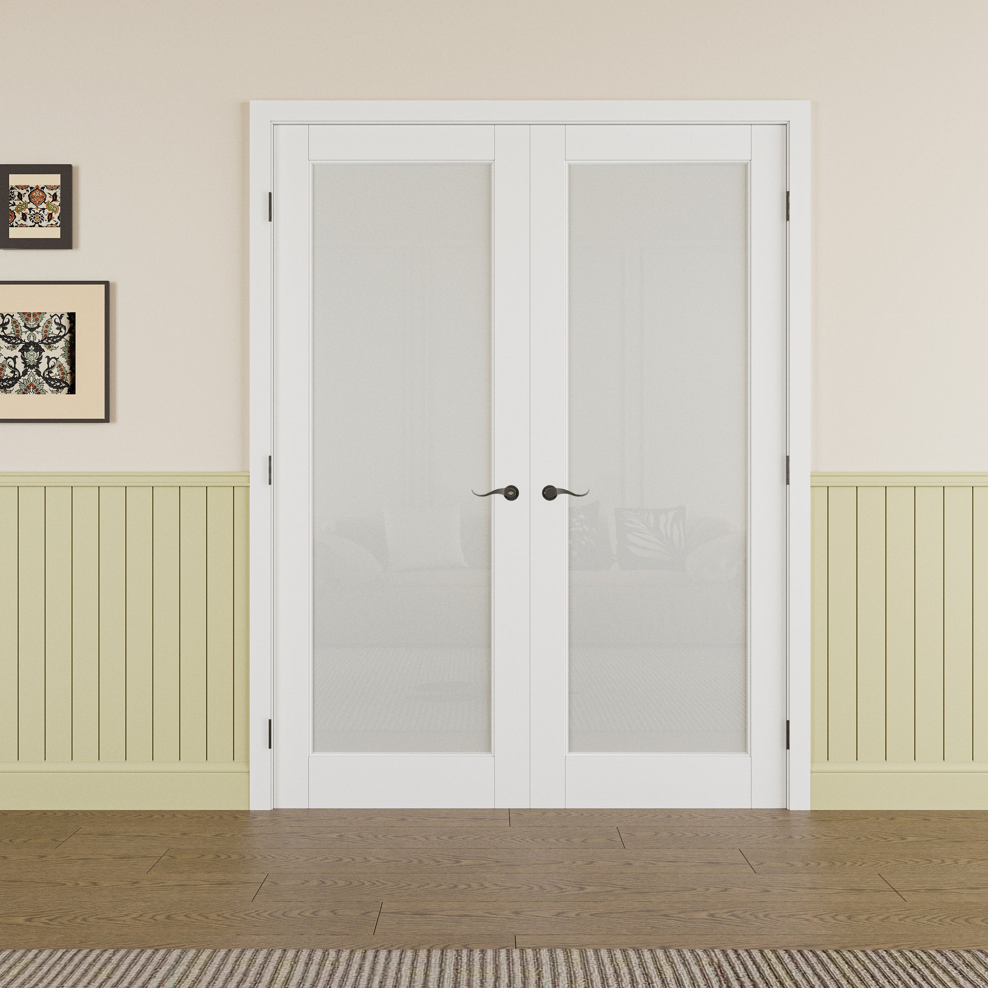 JUJUBON Prehung French Door, Tempered Frosted Glass Door Slabs with Jamb, Black Hinges, 4 Levers & Latch, Solid Core Interior Doosr, Pre-Finished & Paintable, MDF Double Doors Interior