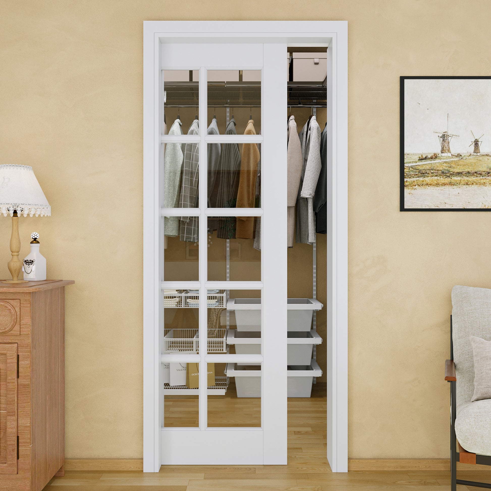 JUJUBON Soft-Close Sliding Pocket Doors, 10-Lite Tempered Clear Glass Door Slab with Hardware Kit&Pocket Door Frame, Interior Sliding Doors for 2x4 Stud, Pre-Finished&Paintable