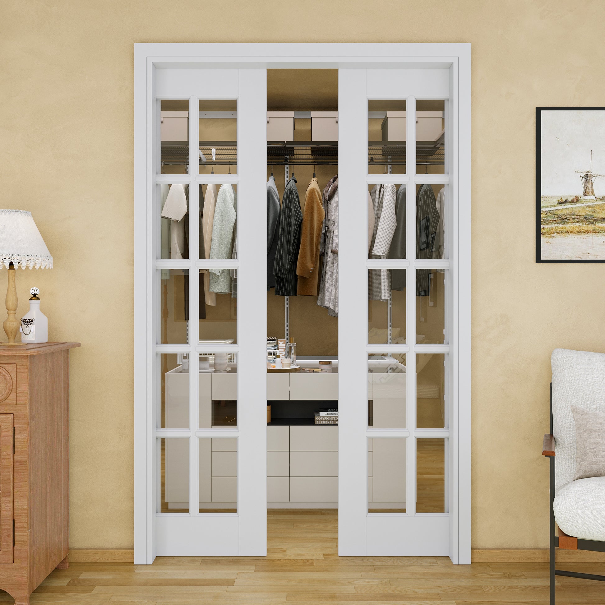 JUJUBON Soft-Close Sliding Pocket Doors, 10-Lite Tempered Clear Glass Door Slab with Hardware Kit&Pocket Door Frame, Interior Sliding Doors for 2x4 Stud, Pre-Finished&Paintable