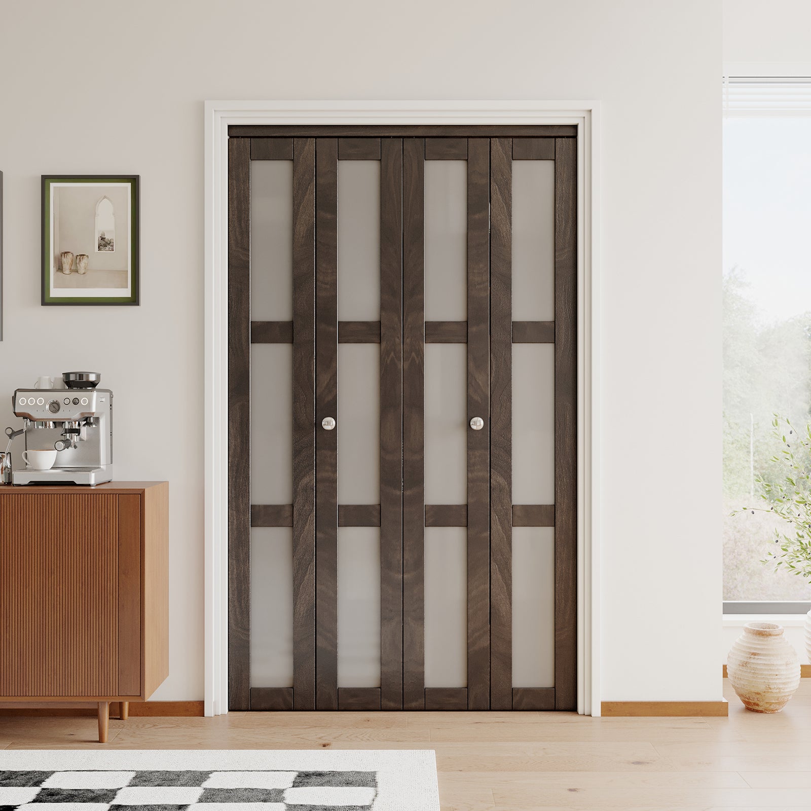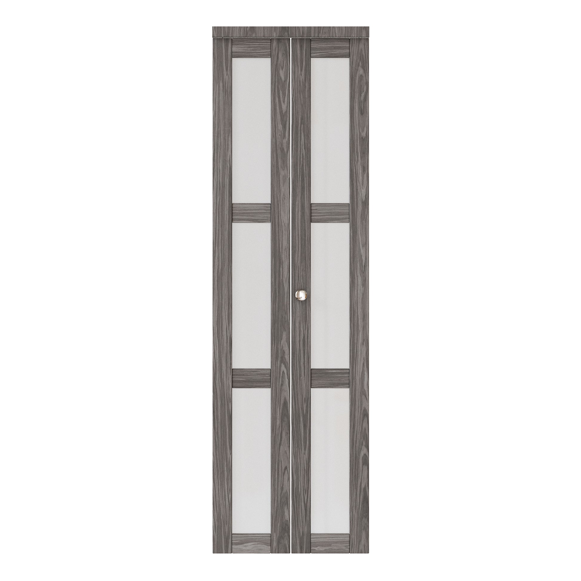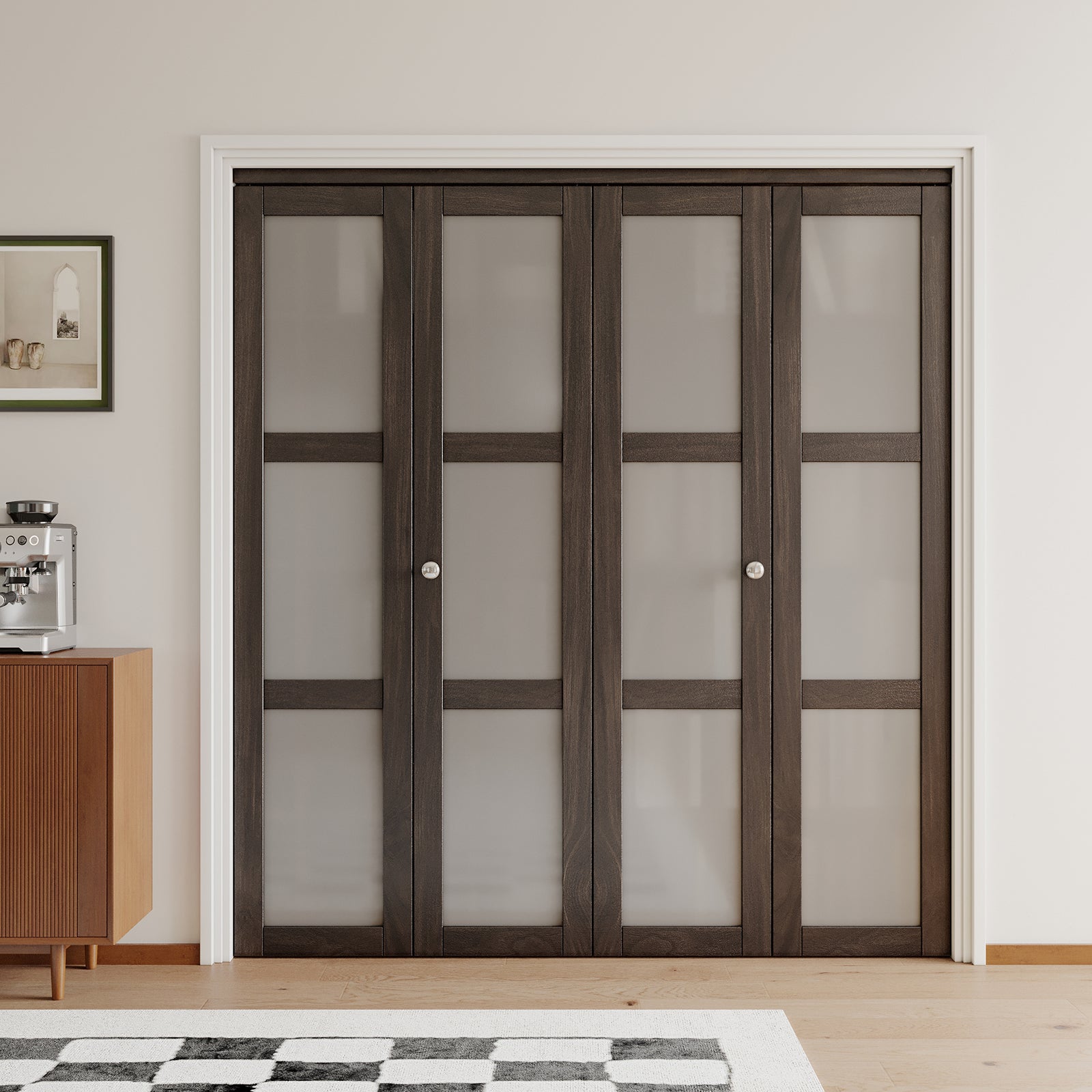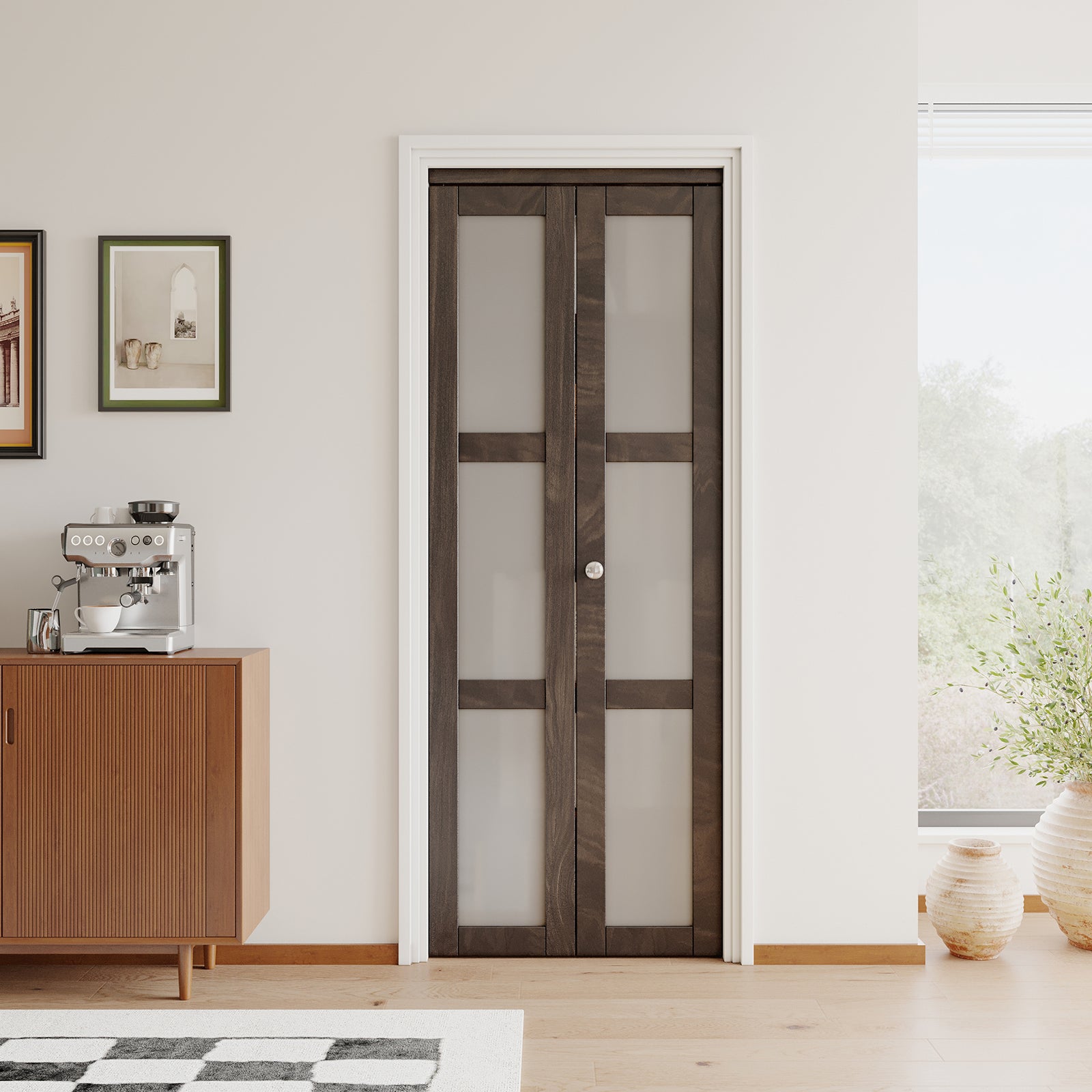 JUJUBON Bi-Fold Doors, 3-Lite Tempered Frosted Glass Closet Door Hardware Kit Included, Interior Folding Door Pre-Drilled Easy Assembly, Ancient Wood Color