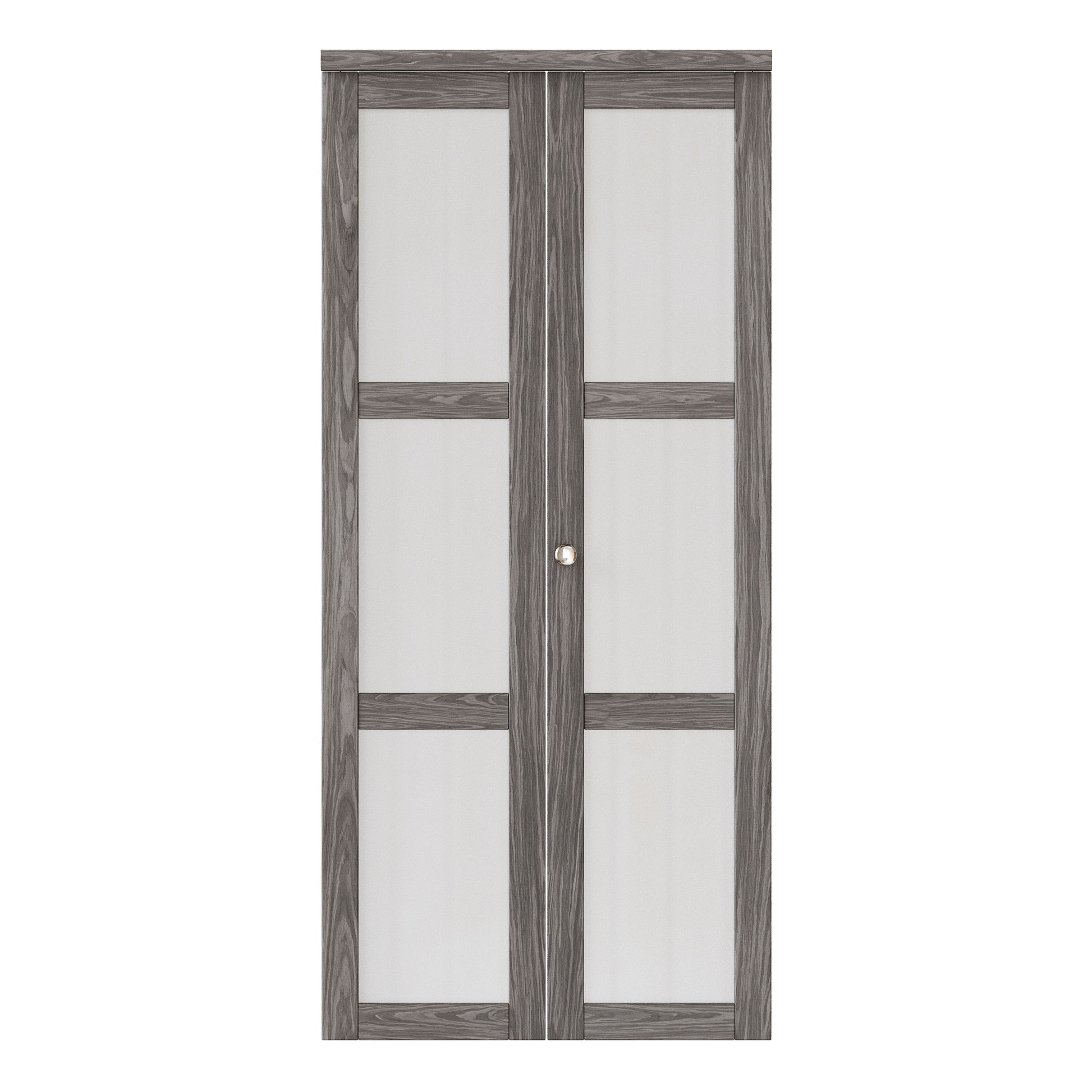 JUJUBON Bi-Fold Doors, 3-Lite Tempered Frosted Glass Closet Door Hardware Kit Included, Interior Folding Door Pre-Drilled Easy Assembly, Ancient Wood Color