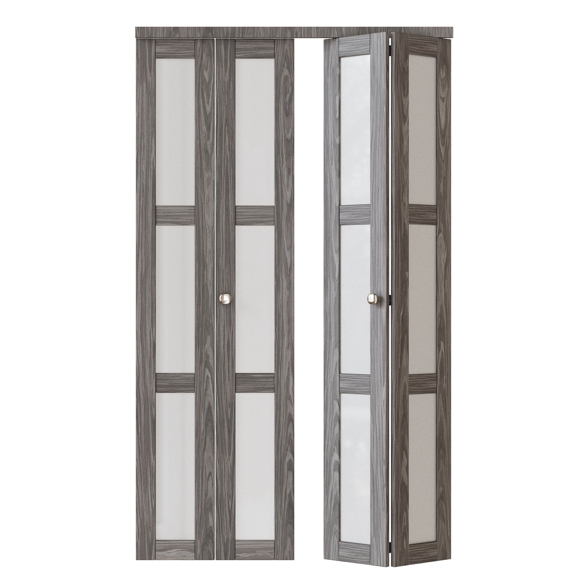 JUJUBON Bi-Fold Doors, 3-Lite Tempered Frosted Glass Closet Door Hardware Kit Included, Interior Folding Door Pre-Drilled Easy Assembly, Ancient Wood Color
