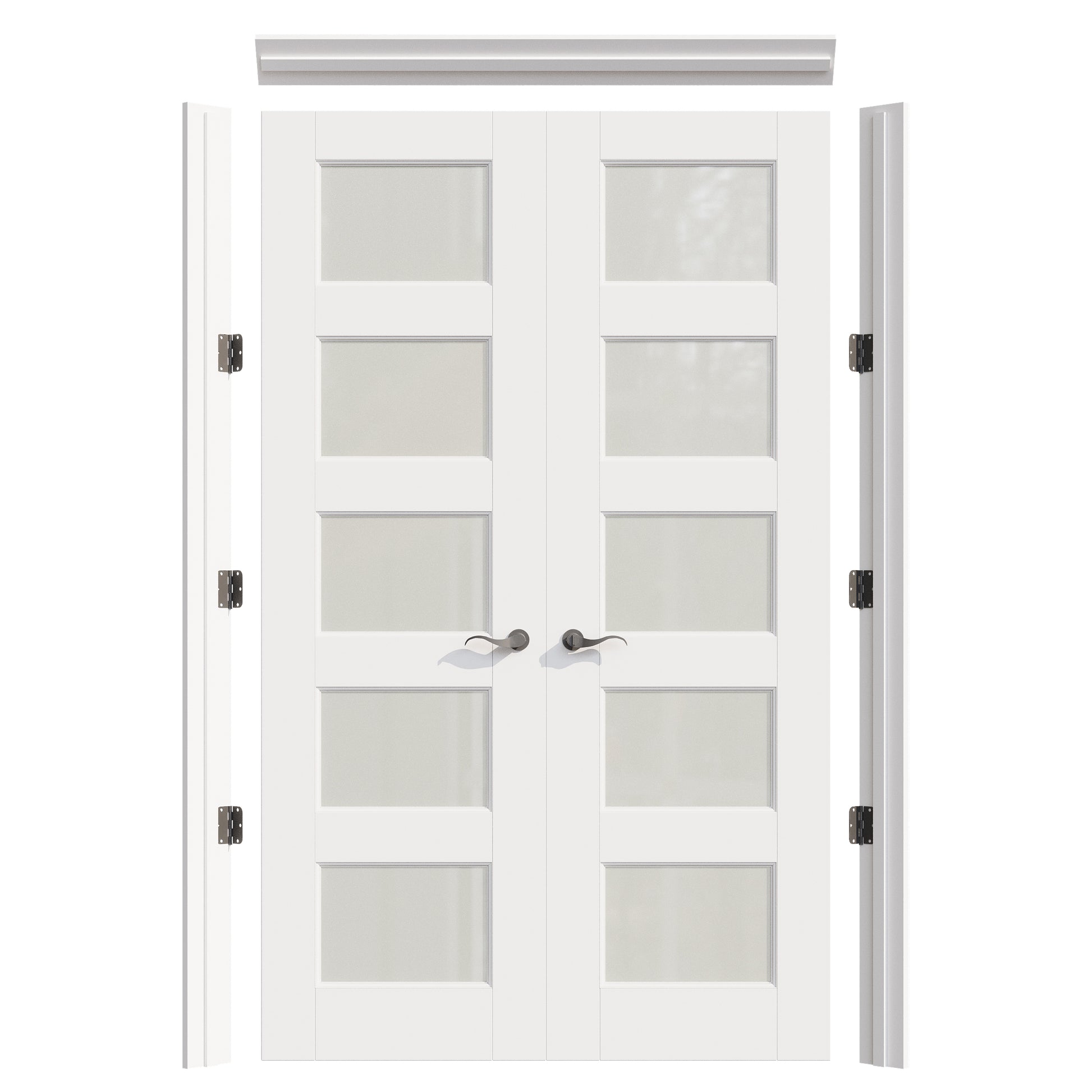JUJUBON Prehung French Door, 5 Lite Tempered Frosted Glass Door Slabs with Jamb, Black Hinges, 4 Levers & Latch, Solid Core Interior Doors, Pre-Finished & Paintable, MDF Double Doors Interior