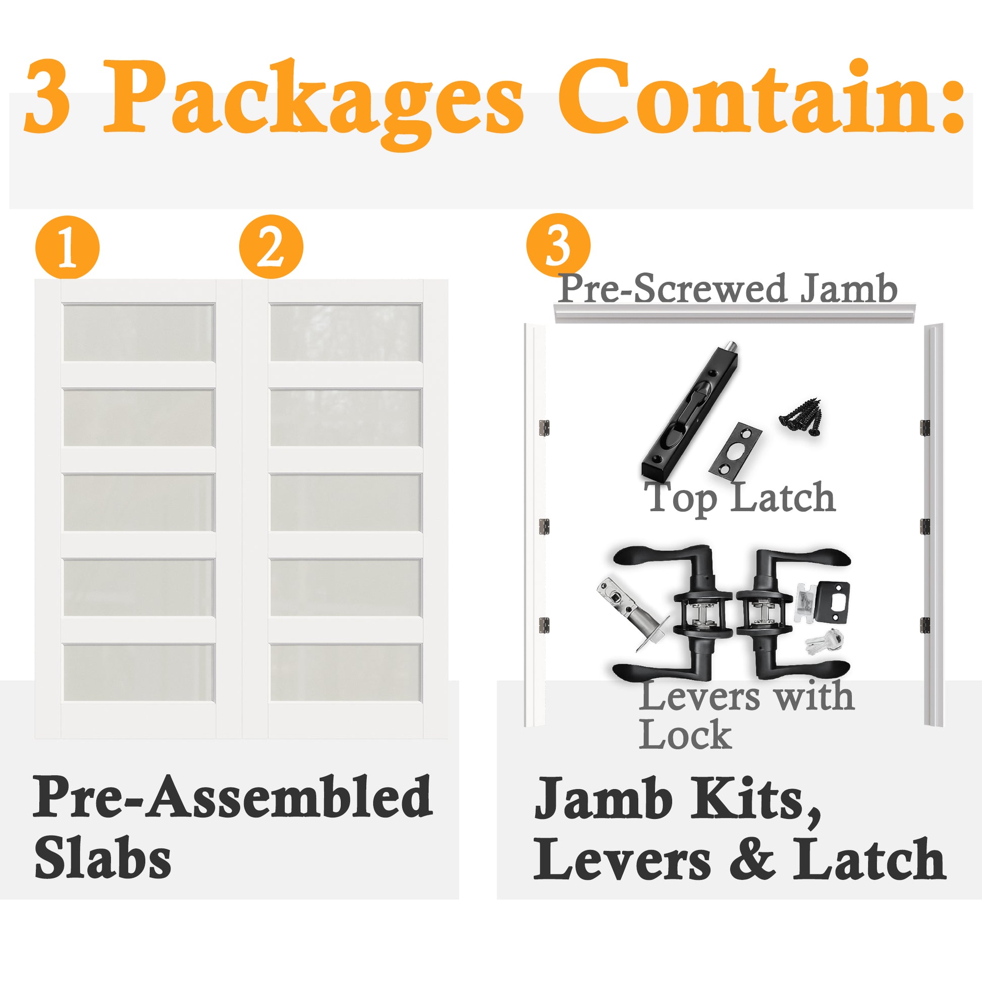 โ Total 3 packages for 1 french door set. Please note the customer need to drill the bore hole and latch after receiving all 3 packages.