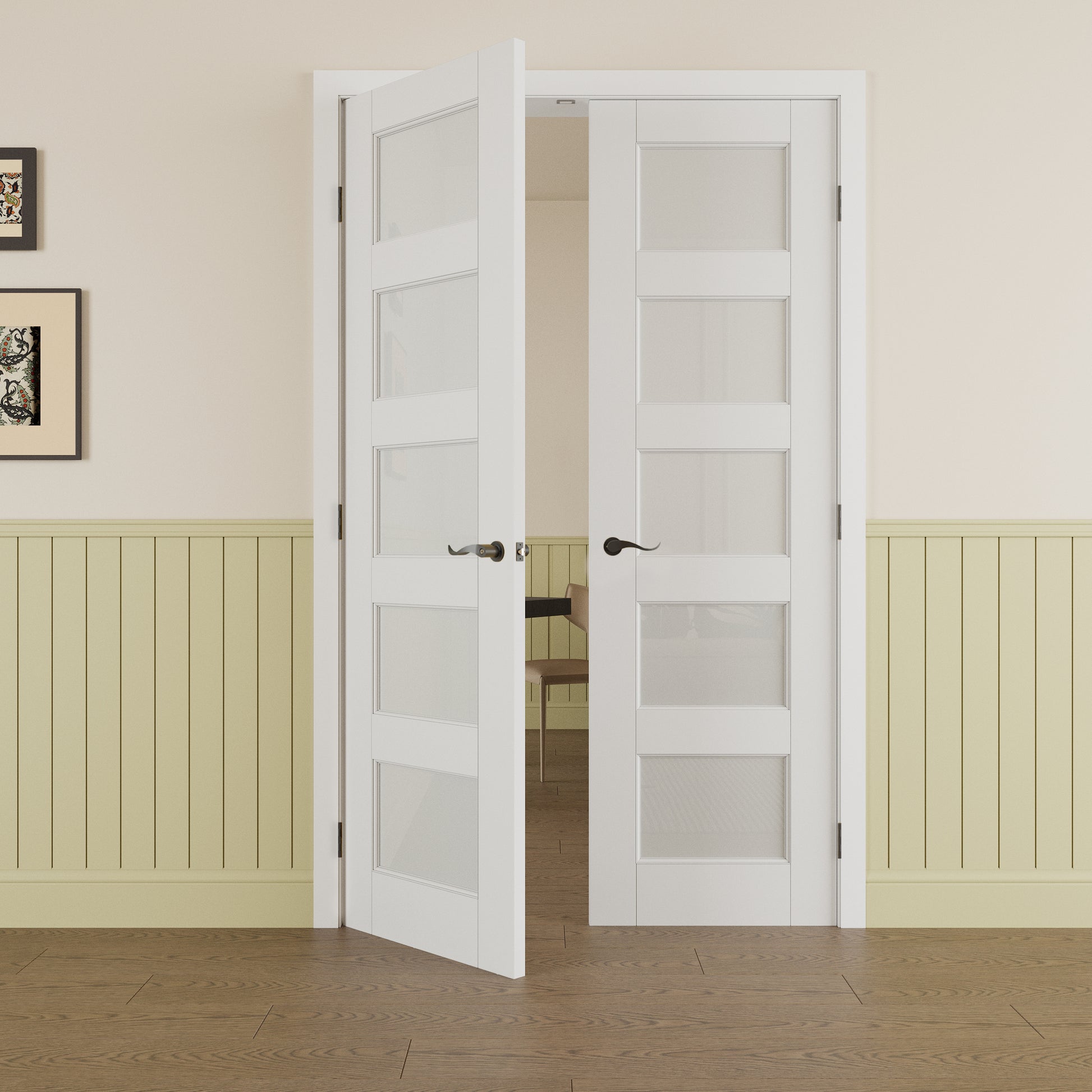 Paintable Frosted Glass French Door