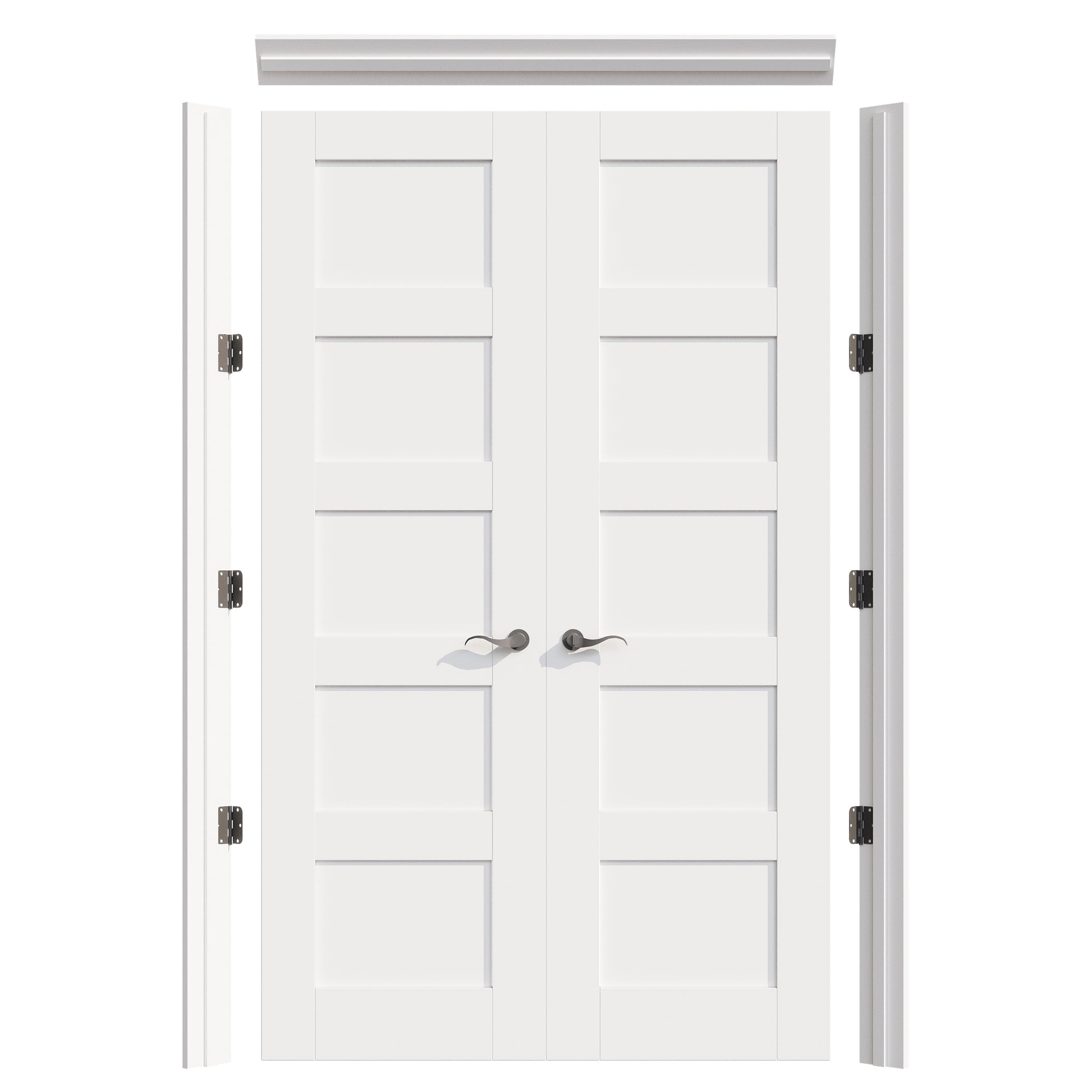 JUJUBON Prehung French Door, 5 Panel Solid Core Door Slabs with Jamb, Black Hinges, 4 Levers & Latch, Solid Core Interior Doors, Pre-Finished & Paintable, MDF Double Doors Interior