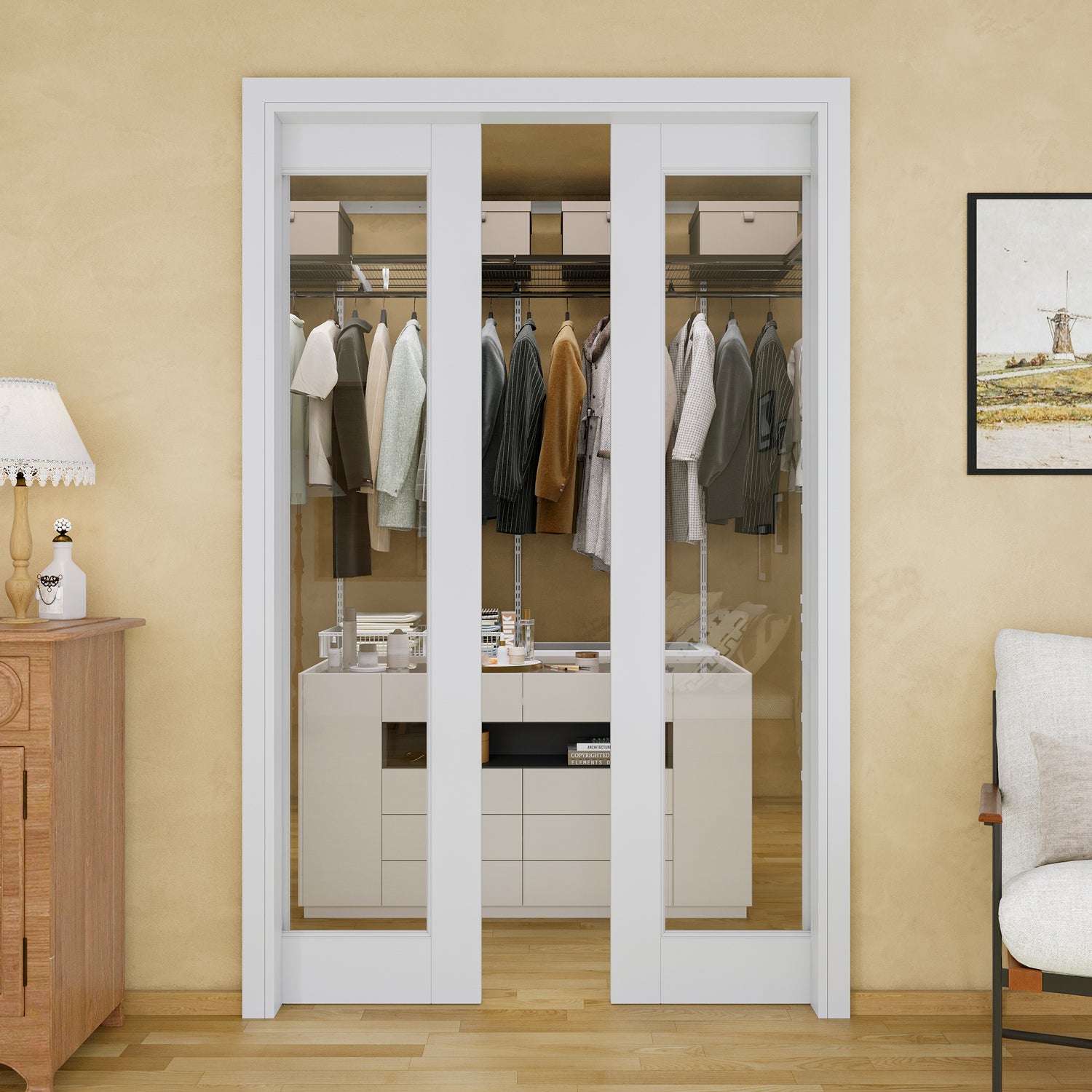 JUJUBON Soft-Close Sliding Pocket Doors, 6-Lite Tempered Clear Glass Door Slab with Hardware Kit&Pocket Door Frame, Interior Sliding Doors for 2x4 Stud, Pre-Finished&Paintable