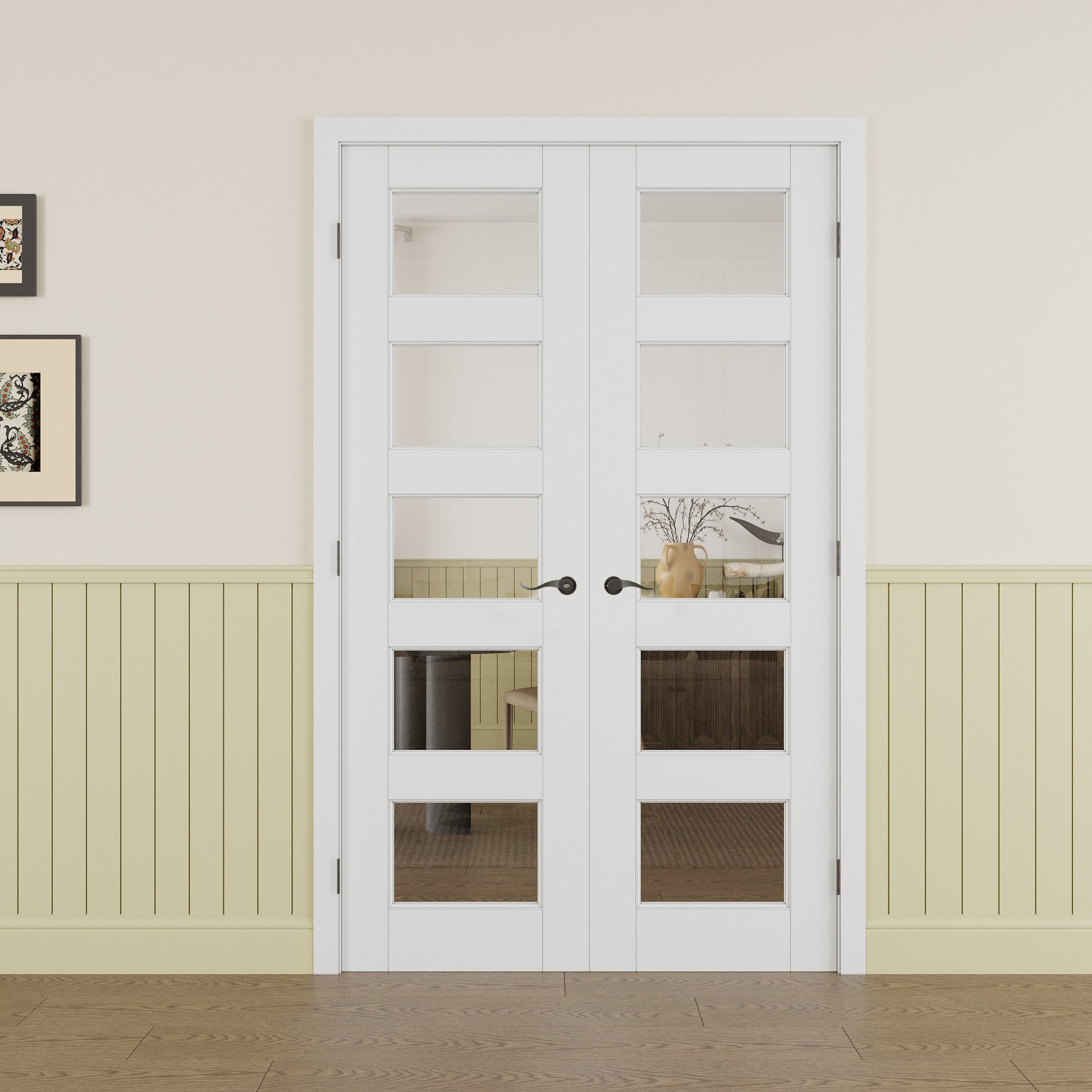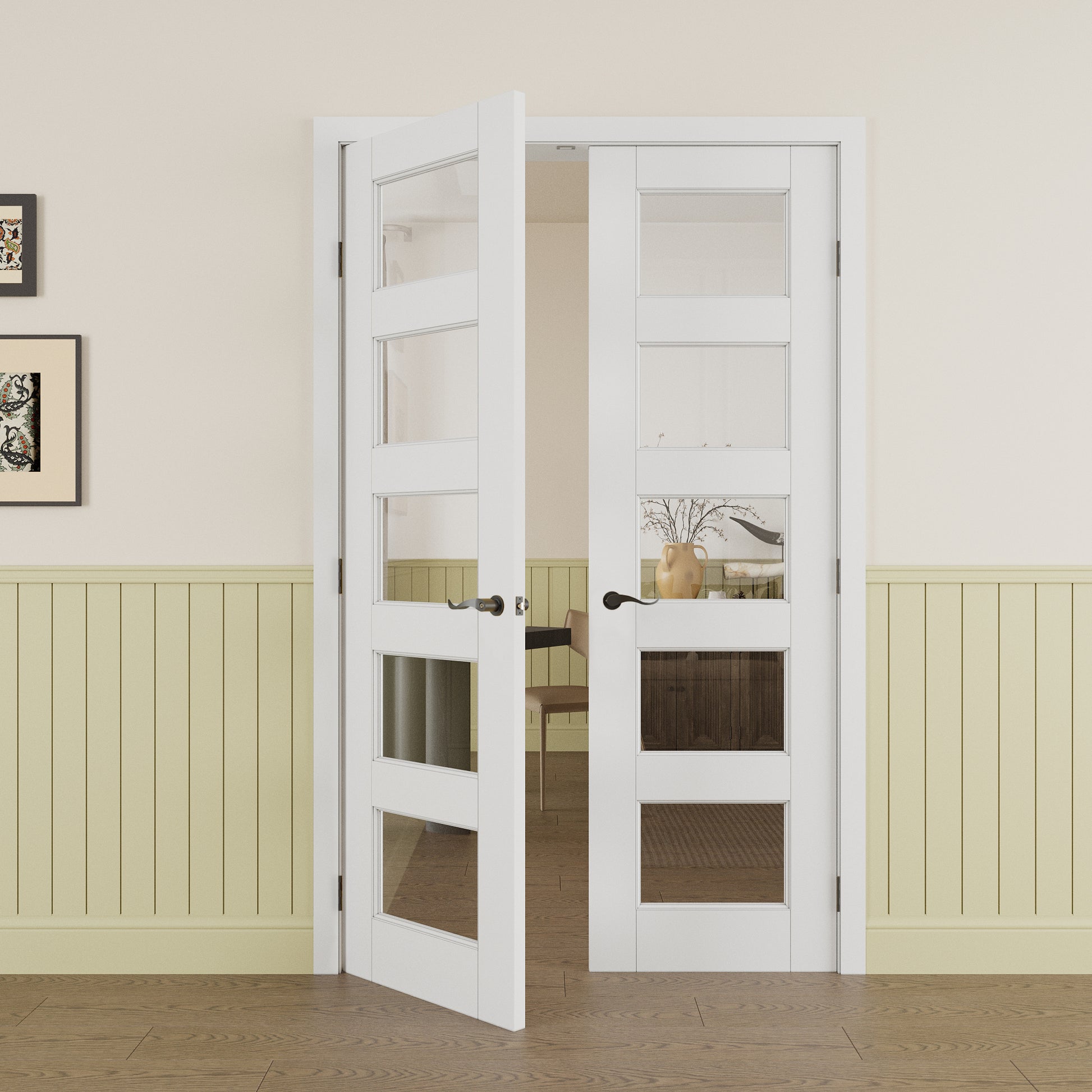 Jujubon 5-Lite Clear Glass White Solid Core Double Prehung French Door with Ready-to-Assemble Jamb