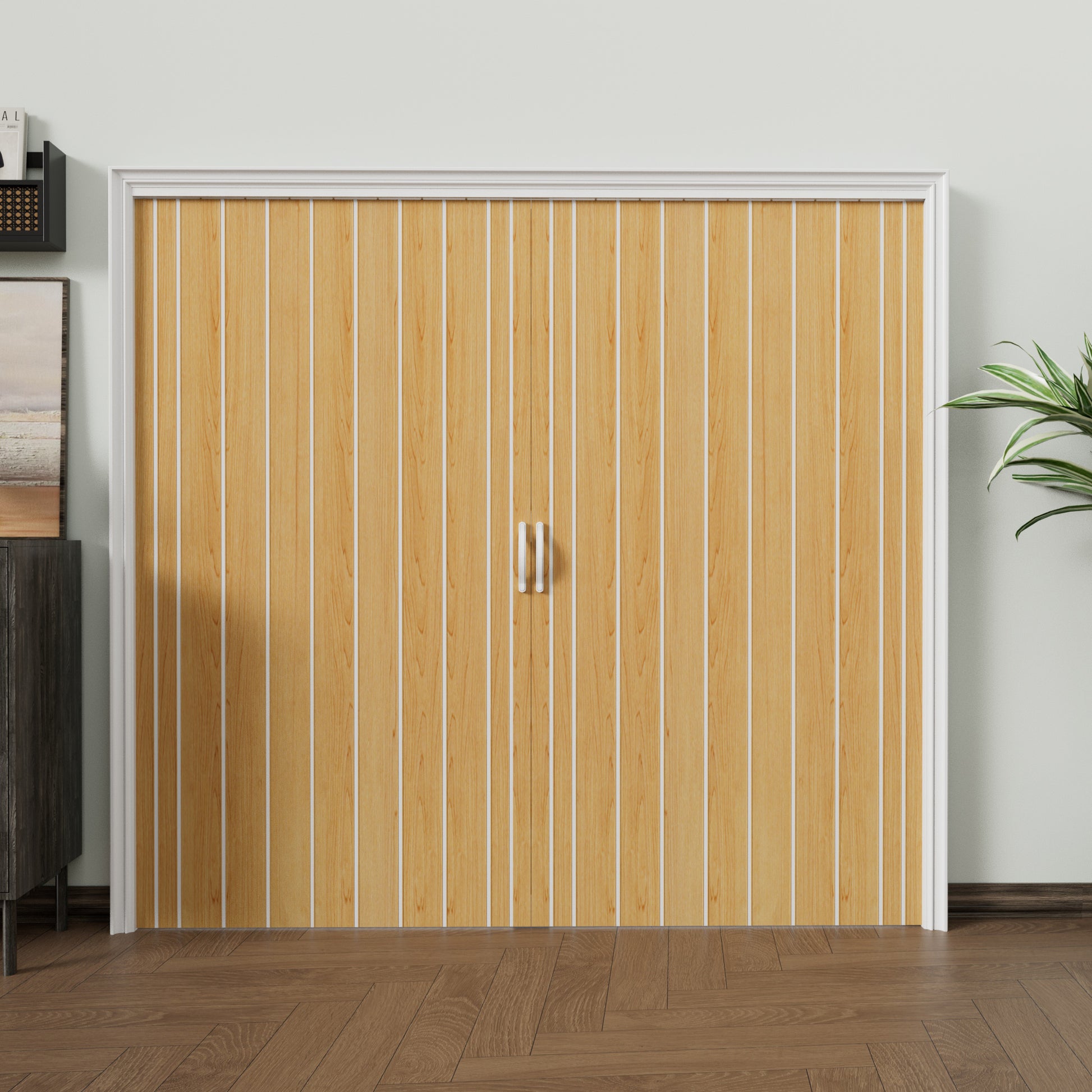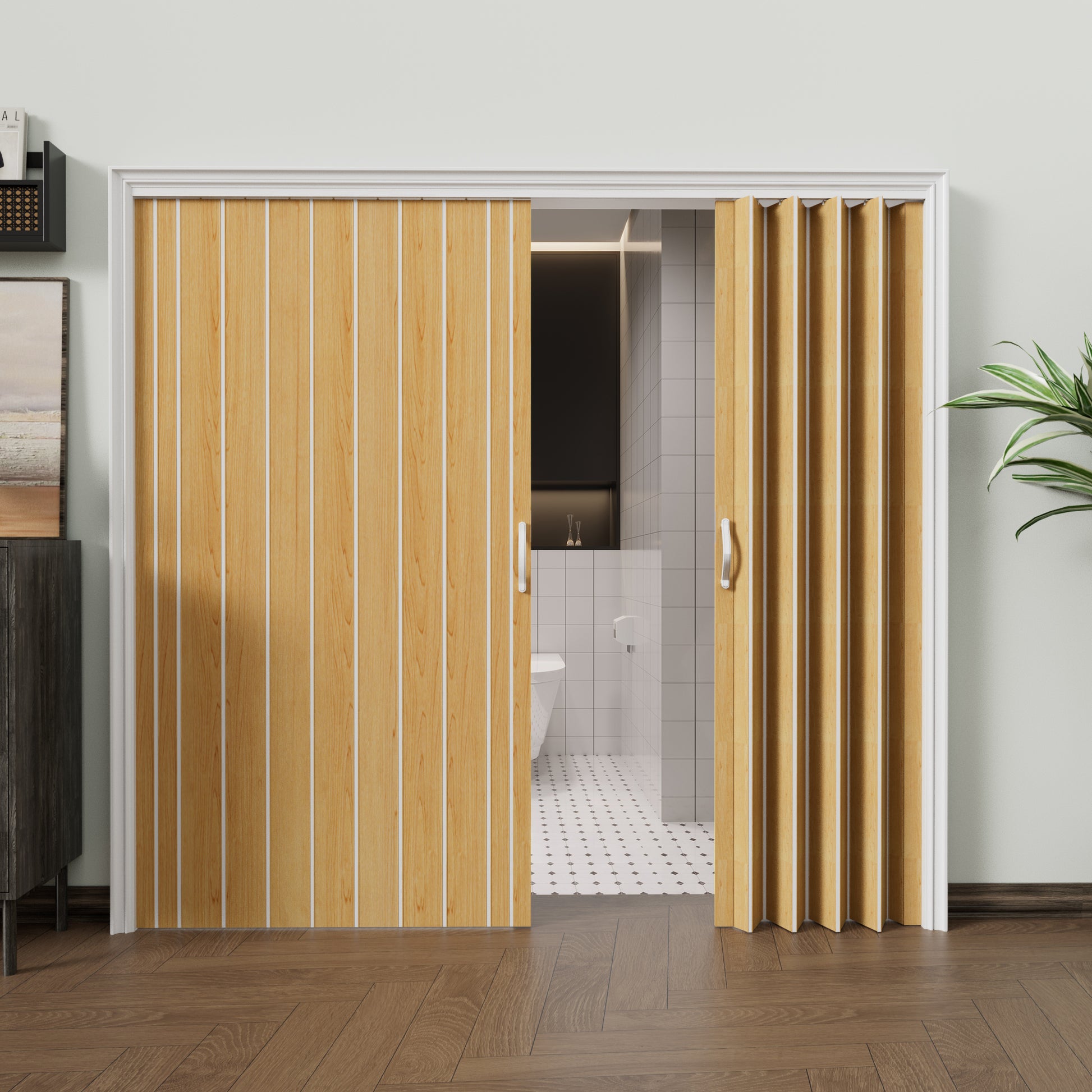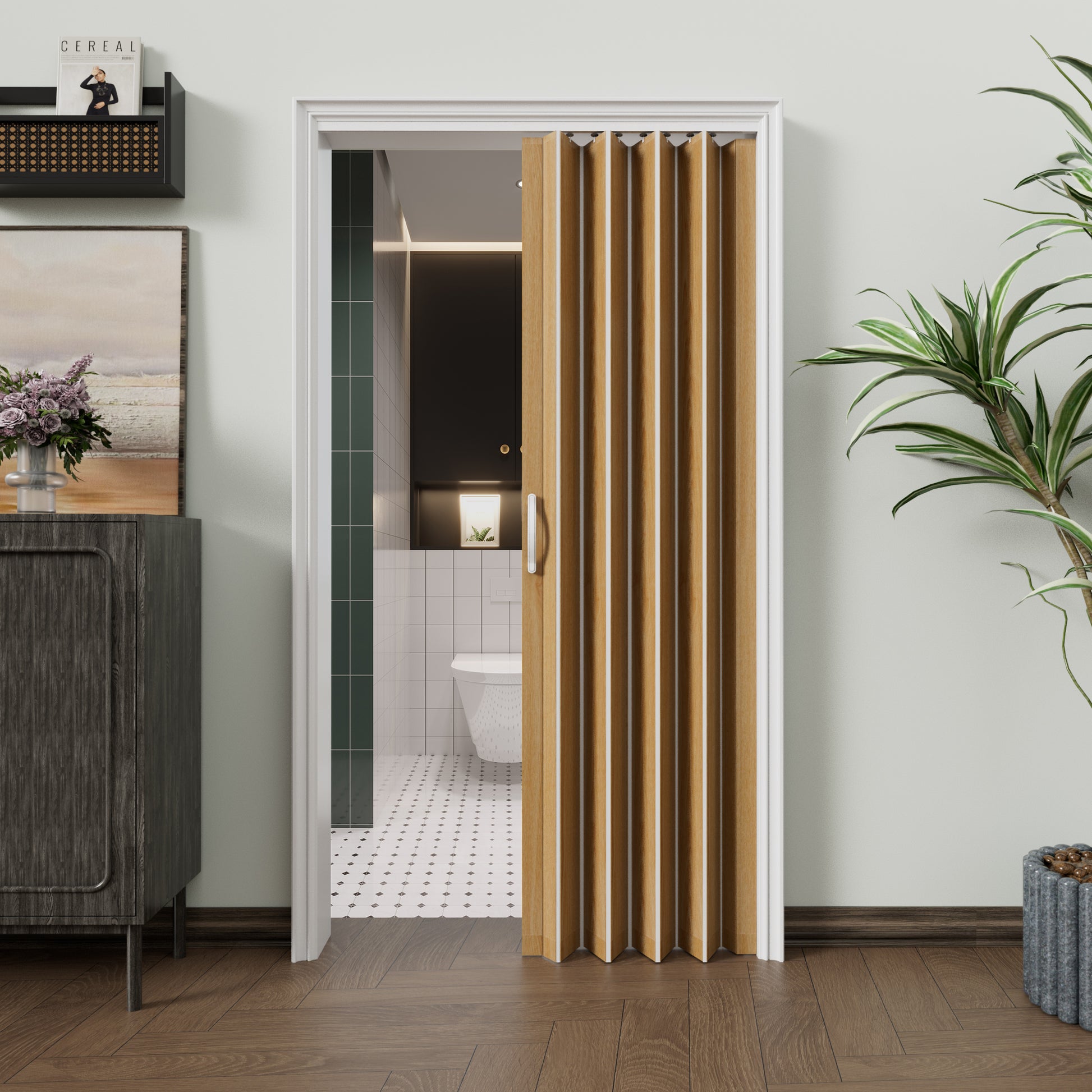 JUJUBON Enhanced Accordion Doors 24"-36" x 80", with Upgraded Roller & Handle & Complete Hardware, Interior Multifold Folding Doors for Closet & Pantry, Easy Installation - Oak, Double Layer