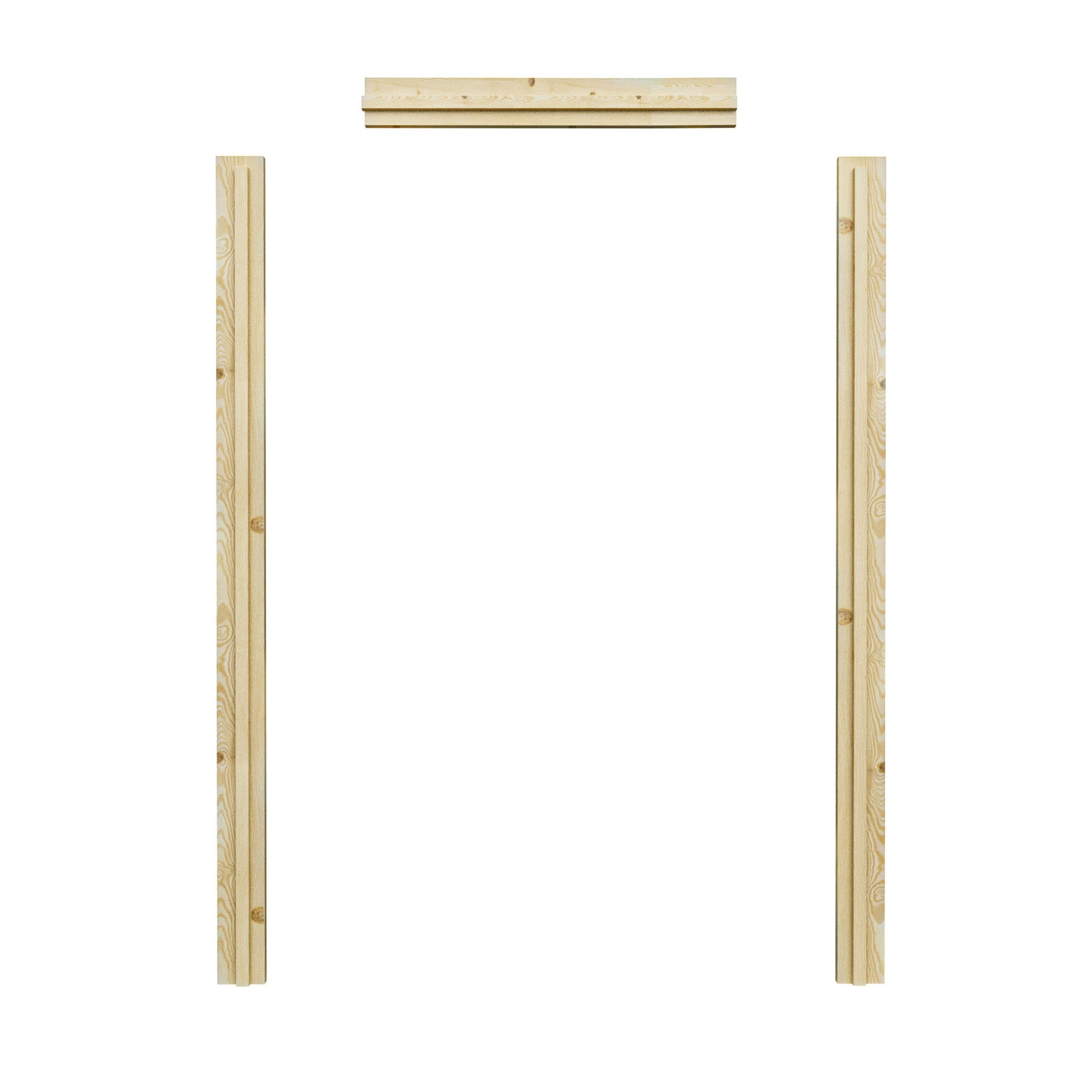 The jamb is made of pine wood for exterior dutch door. There is no hinge included in the jamb package, while our dutch door slab package contains 4 black hinges. The width and height can be trimmed to fit various openings.