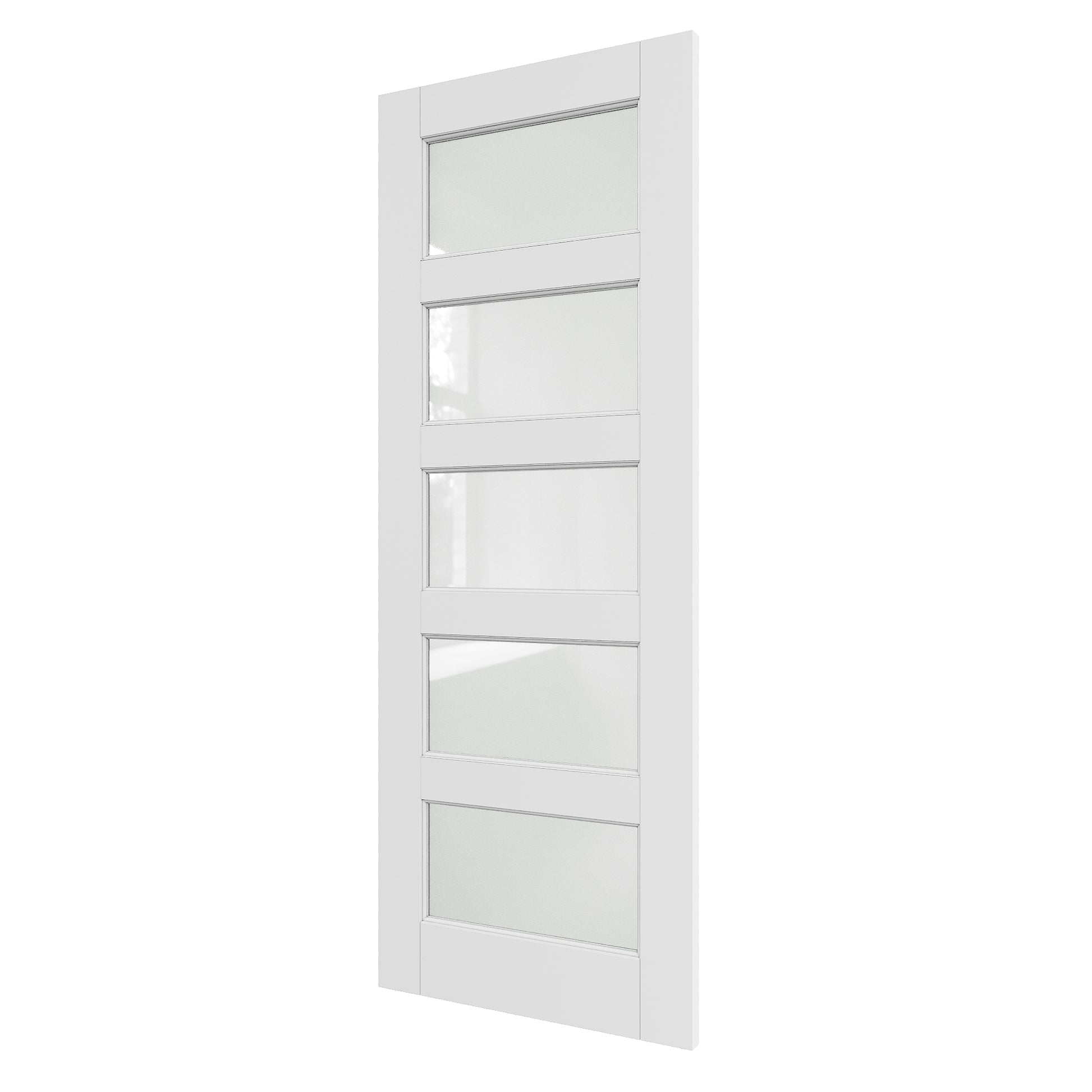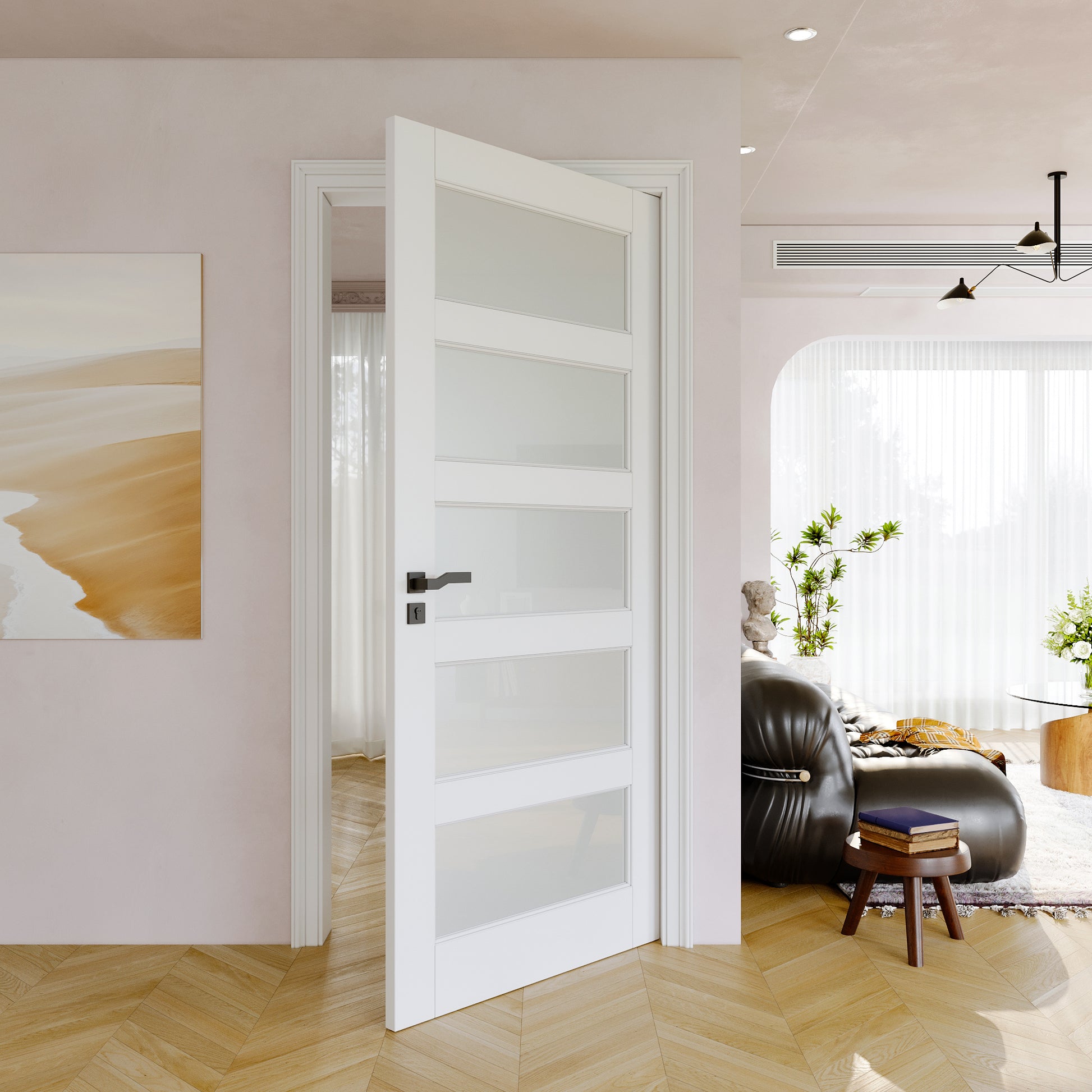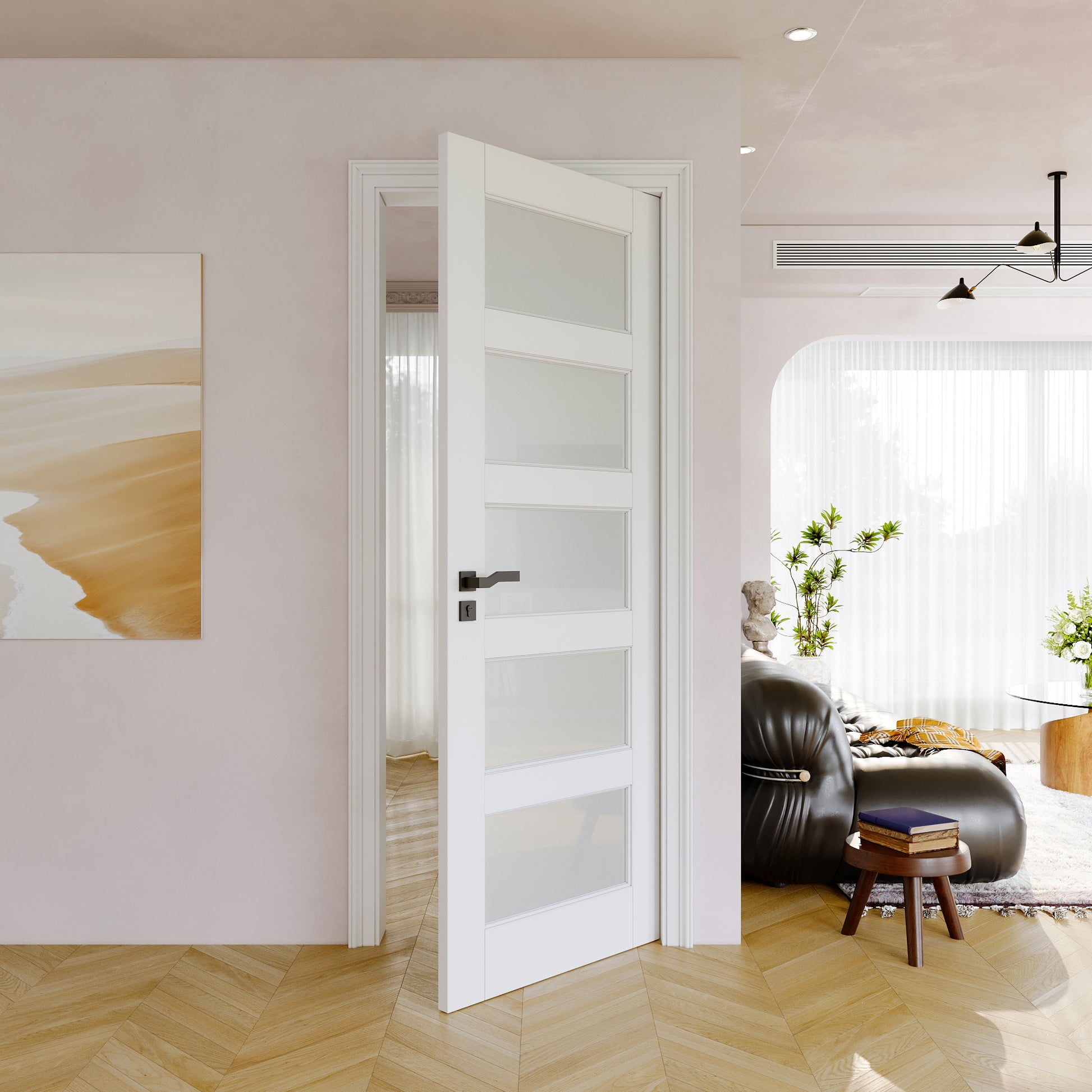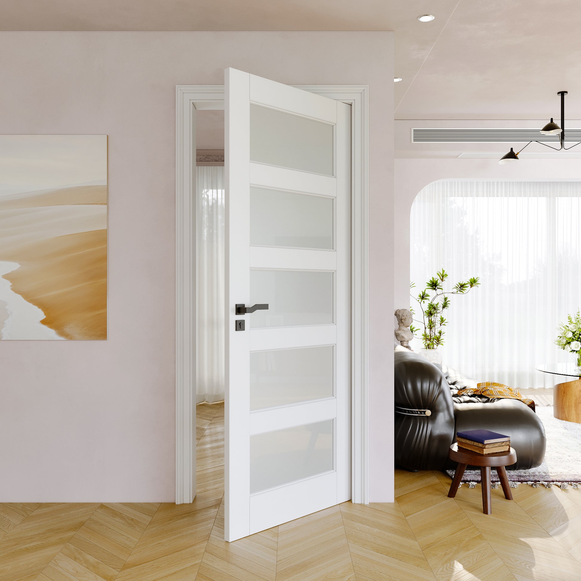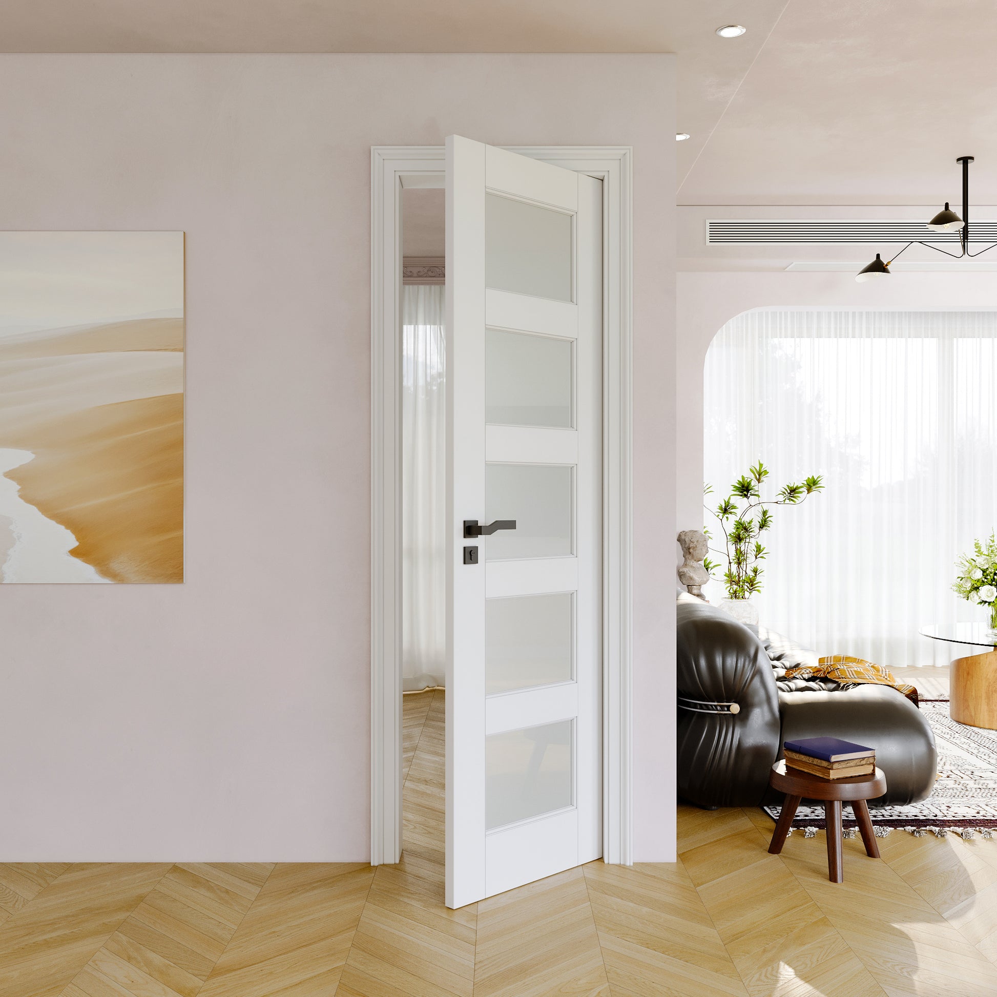 JUJUBON Slab Door, 5-Panel Pre-Assembled Frosted Glass Interior French Door Slab, Soild Core & Pre-Finished Single Panel for Pantry Bedroom Closet as Pocket, Bifold, Barn Doors-Shaker w/o Hardware