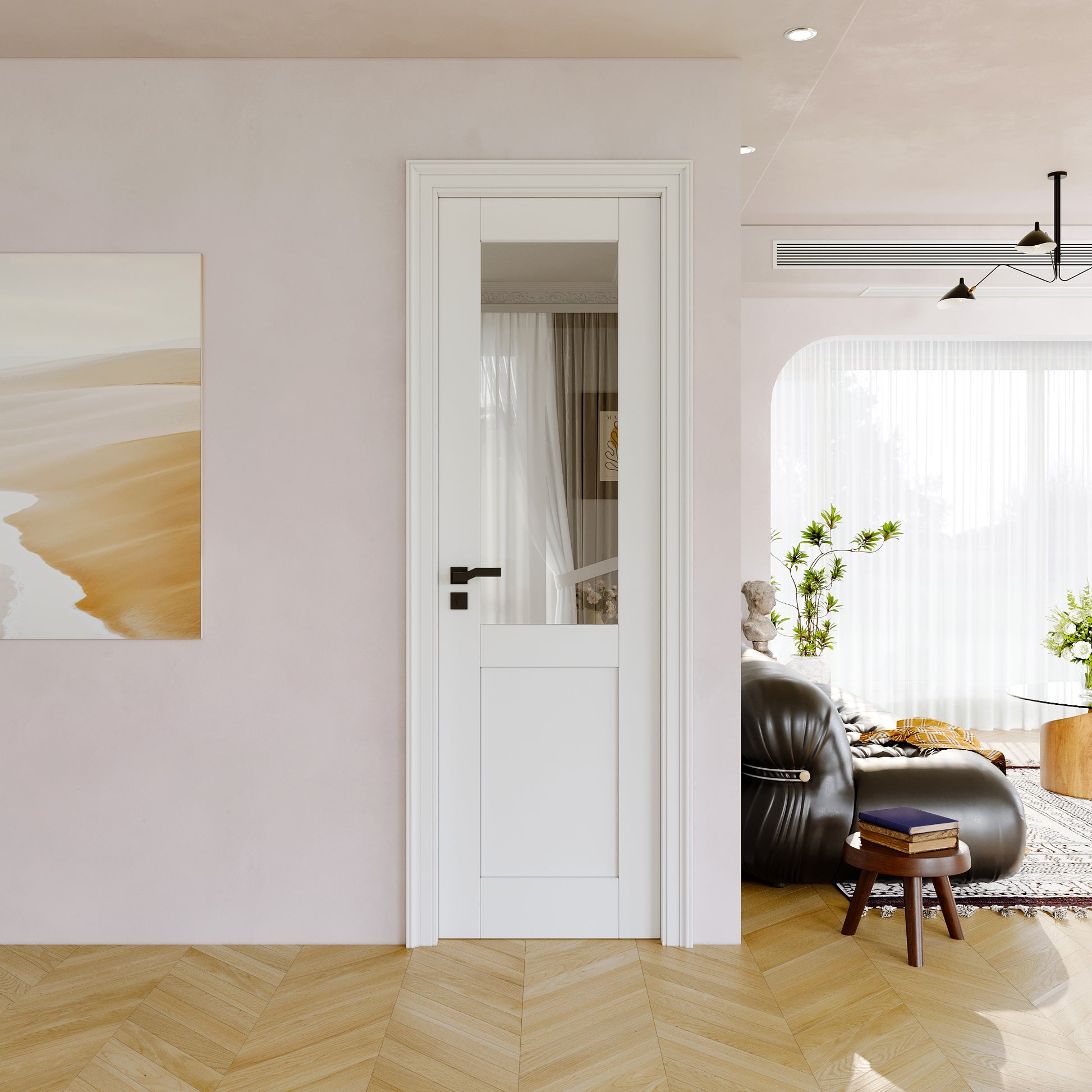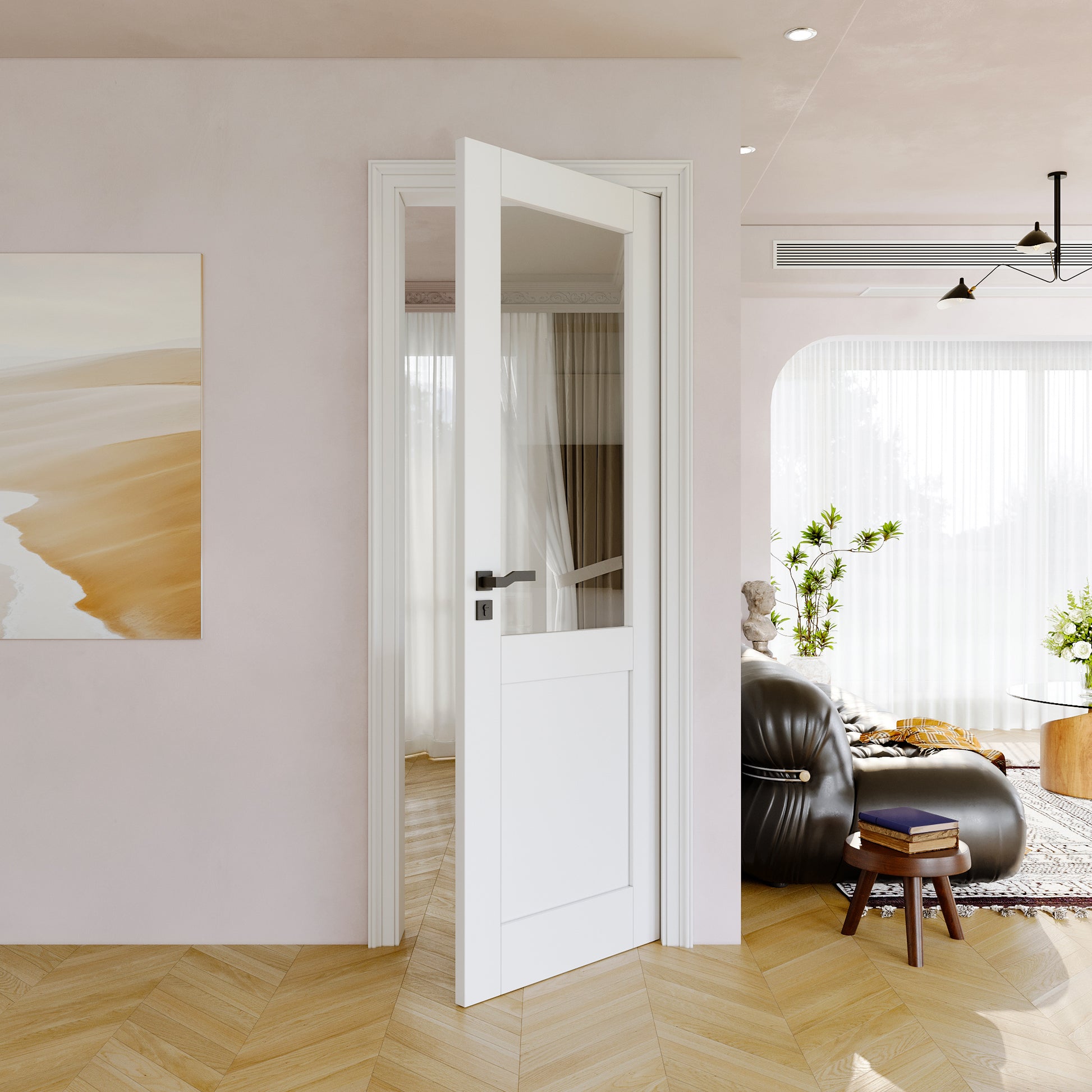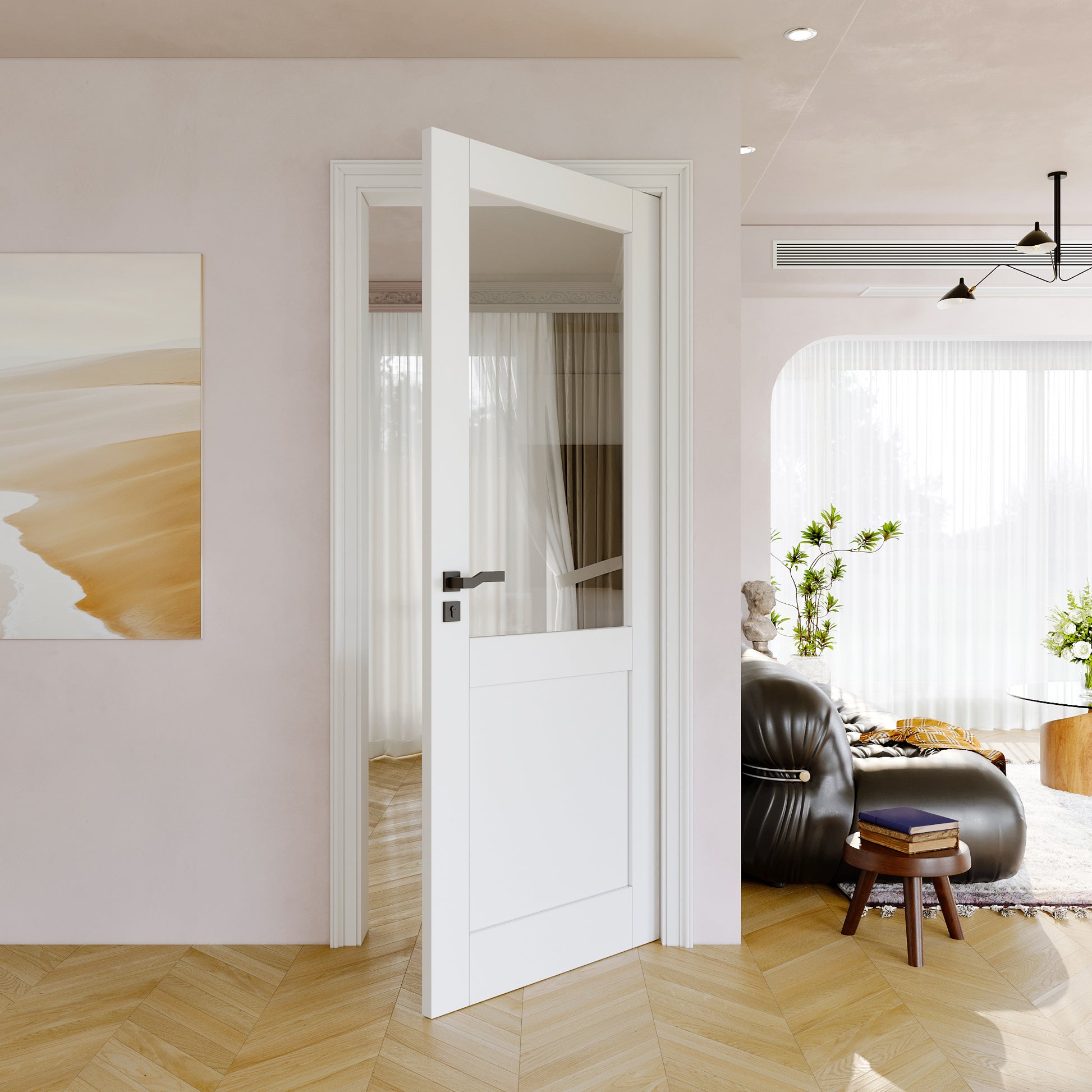 JUJUBON Clear Glass Slab Door, Half Lite Glass French Door Interior, Pre-Finished Paintable Single Panel for Living Room Pantry Laundry Closet Doors as Prehung, Pocket, Bifold Barn Doors