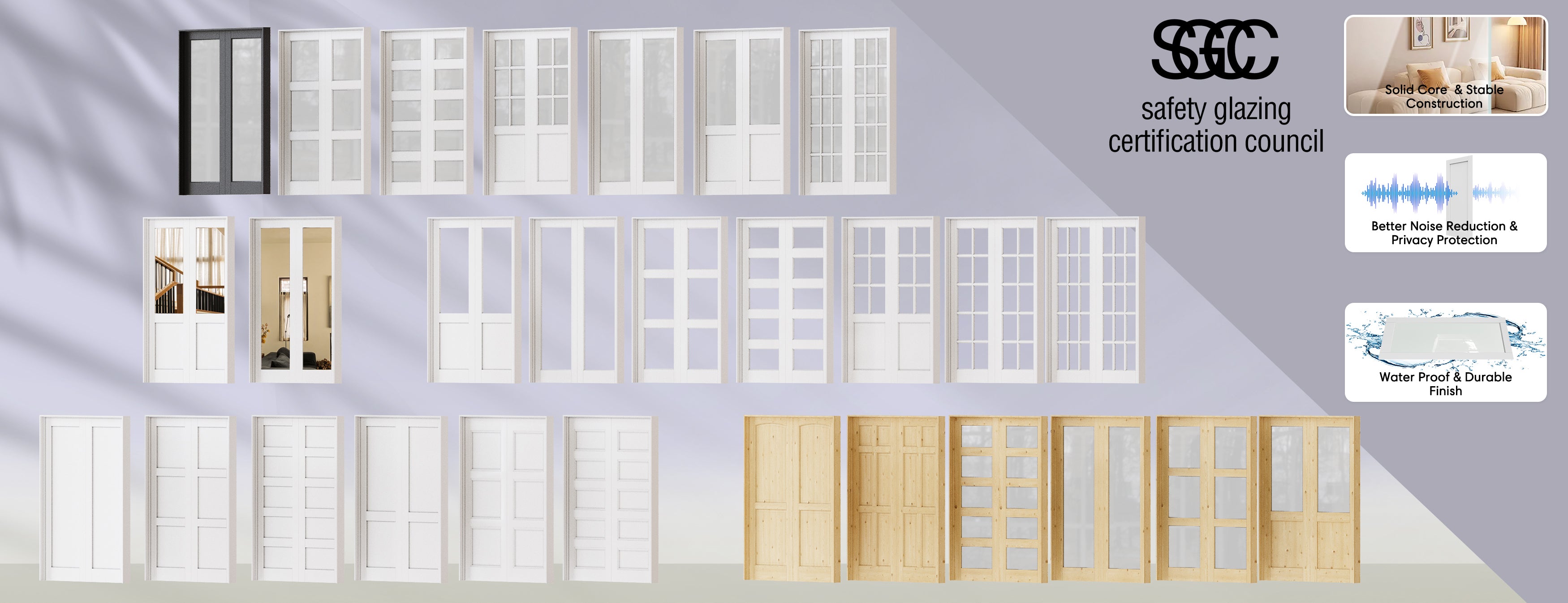 Crafted with premium materials for lasting quality: Solid-core Natural Pine Wood delivers durability, eco-friendliness, and superior noise reduction Complete & Ready-to-Install. Tempered frosted glass (SGCC safety certified) balances natural light transmission with privacy protection.