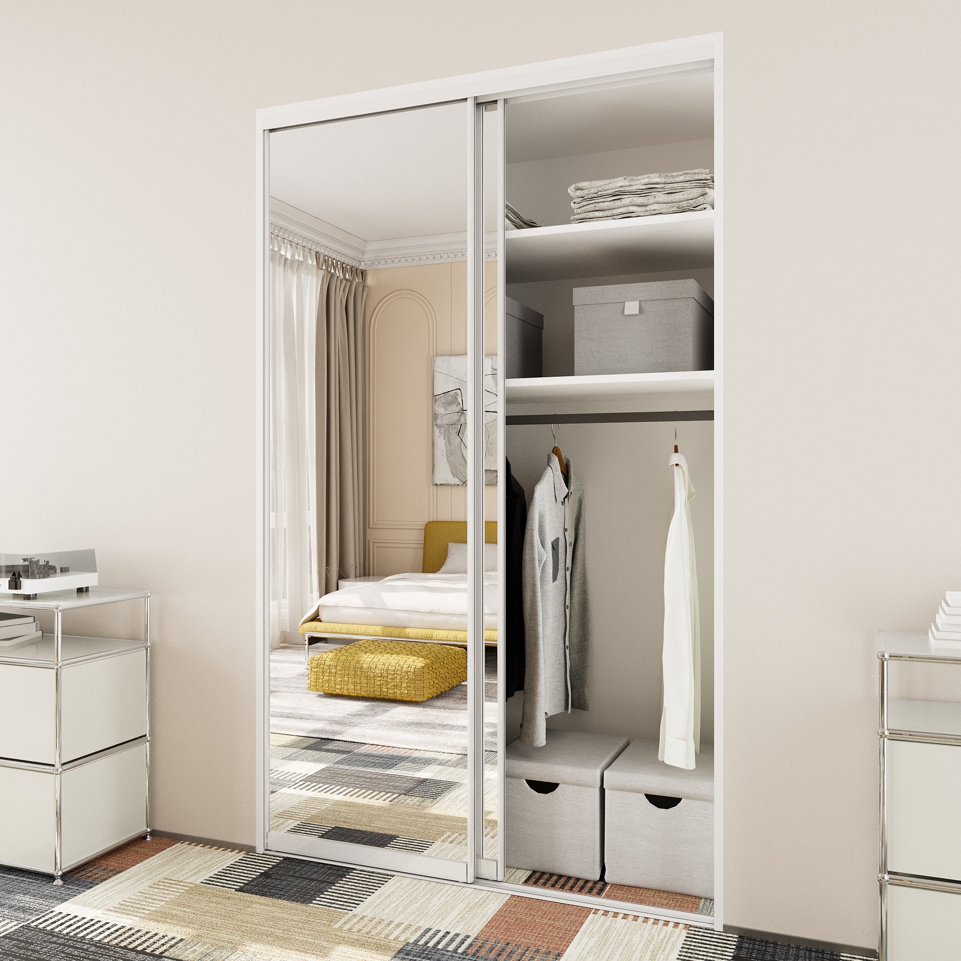 Mirrored Sliding Closet Door, Build Quality One Side Mirror Door for Bedrooms, Aluminum Frame Interior Door with Hardware Kit & Guide, Easy to Install