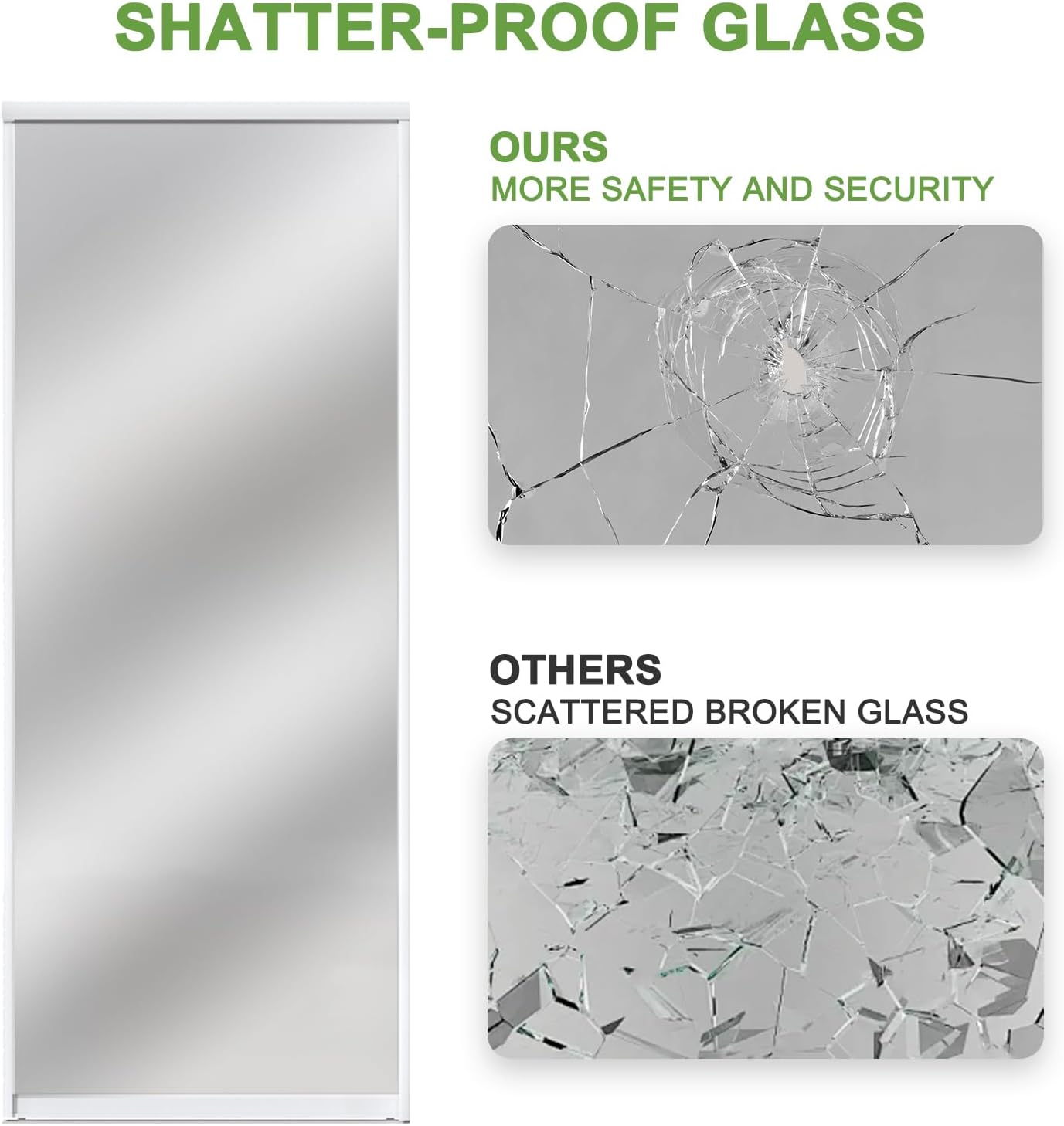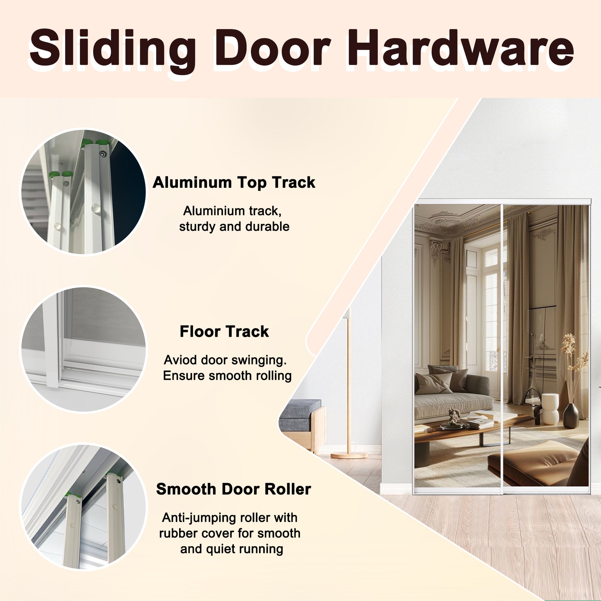 Unique Aluminum Closet Door:The sleek design not only enhances your decor but adds functionality - check your reflection in the high-definition mirror anytime. Unlike standard doors, our dual-track system with smooth rubber rollers ensures whisper-quiet, effortless operation. Perfect for bedrooms, dressing rooms, or any living space, this door comes complete with all hardware for quick and easy installation. Simply order and enjoy instant style - your perfect sliding door is just a click away.