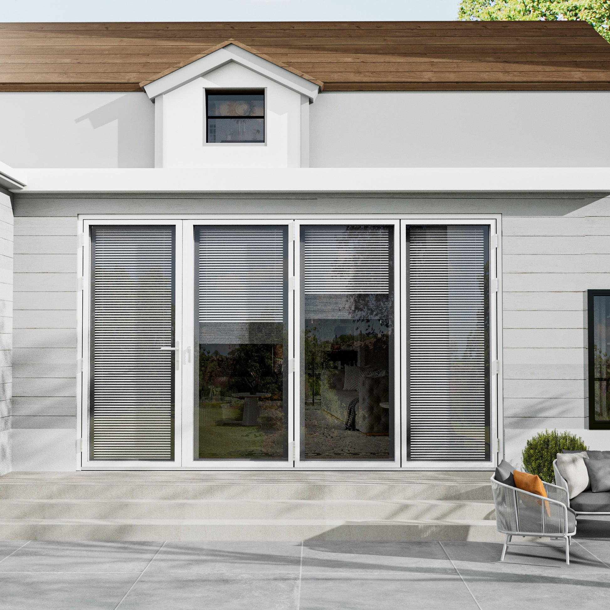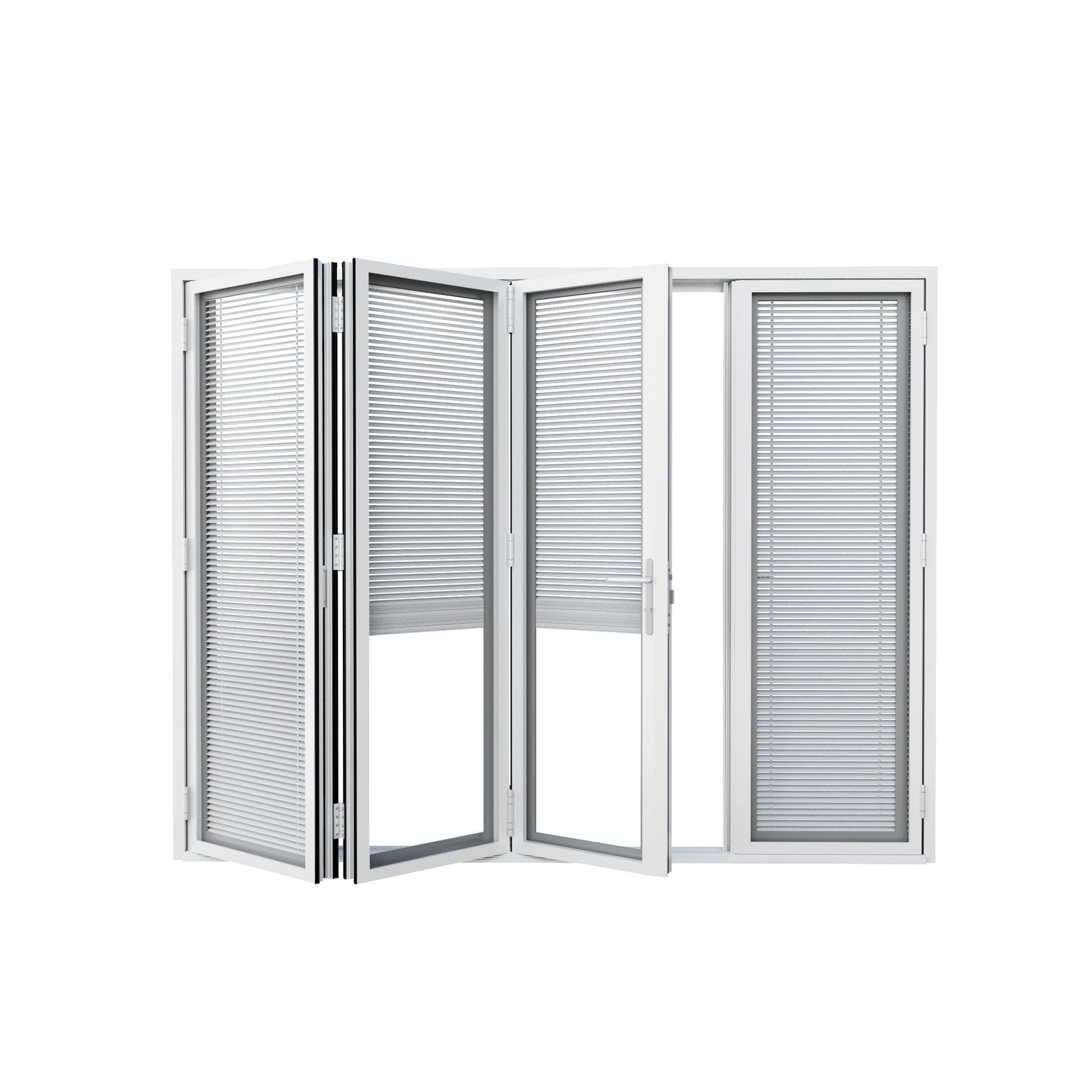 Jujubon 4 Panel Center Opening Outswing Double Louver White Aluminum Folding Patio Door