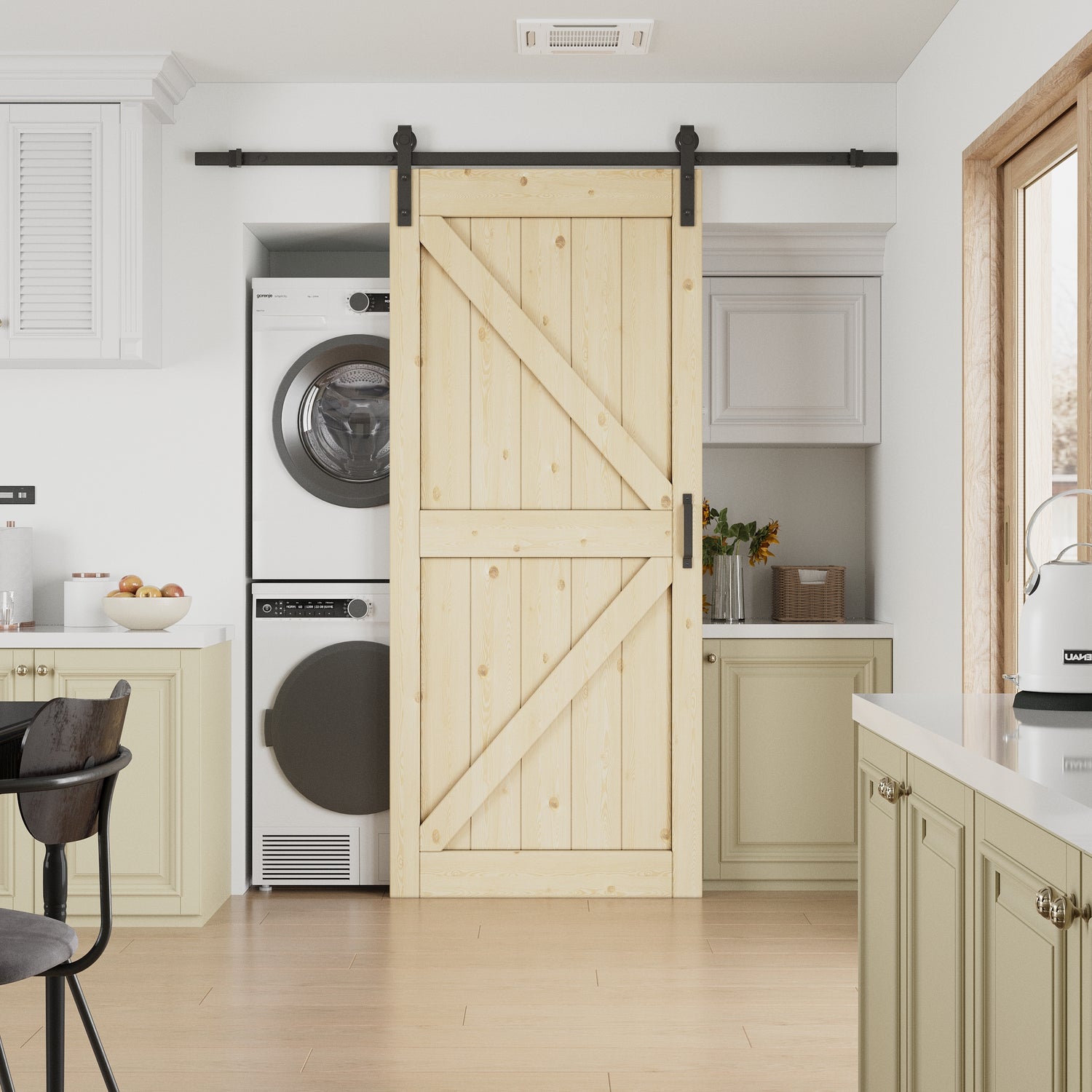 Barn Doors and Hardware Track Kit Included Handle, Unfinished, K-Design,Heavy Solid Anti-Scratch Solid Pine Wood, Wood Sliding Barn Door, Simple DIY Assembly, Easy to Install