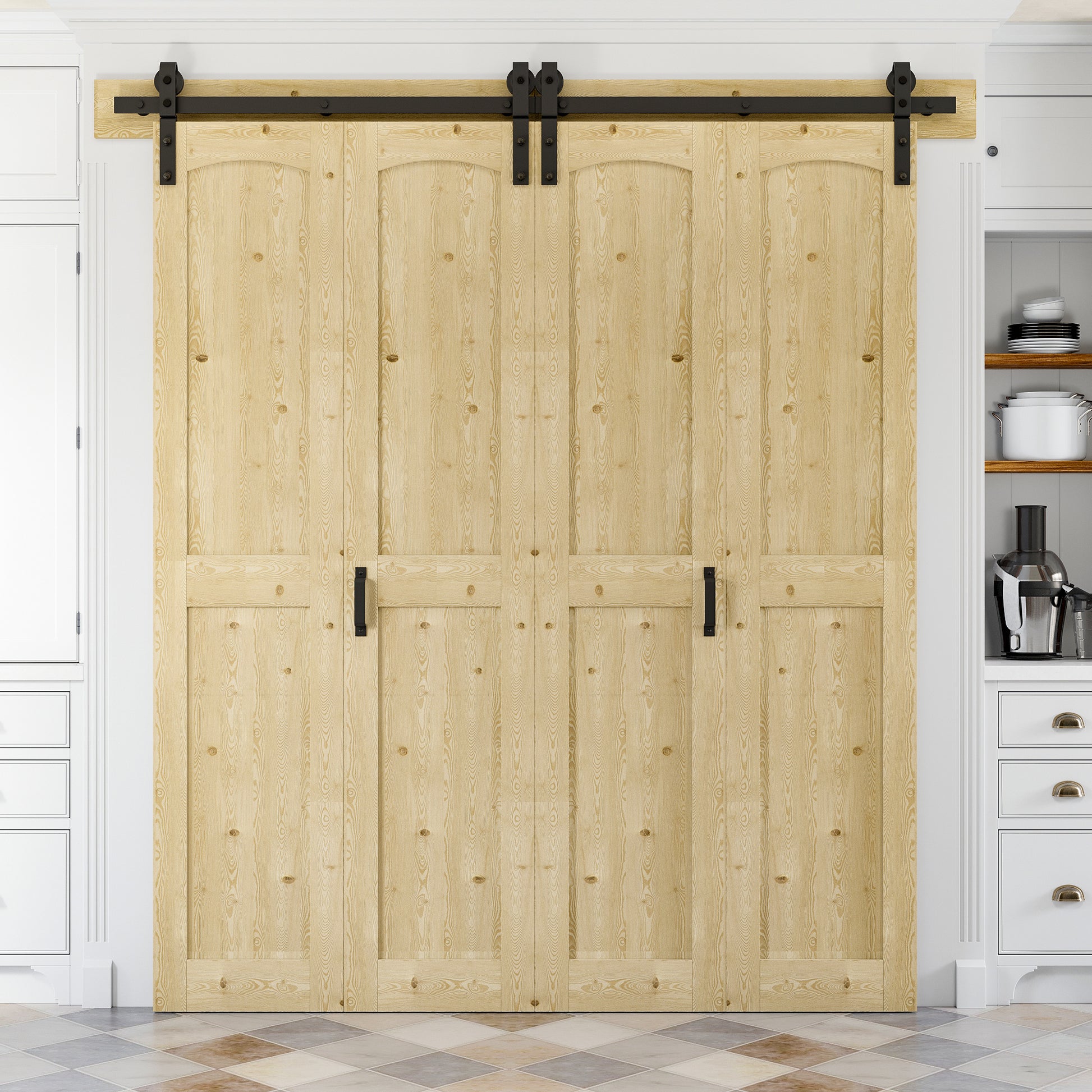 Bifold Barn Door , Pre-Assembled Unfinished Pine Wood Panels, Bi-Fold Sliding Closet Doors with Header Board & Hardware Kit Included, Water-Resistant Pine Surface, H-Frame