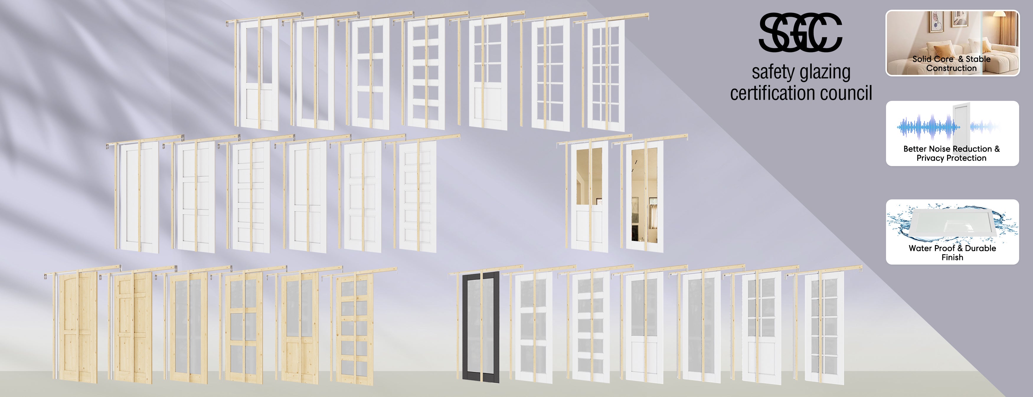 Premium Silent Glide System: Our upgraded rollers and soft close feature safety-engineered materials to prevent pinching fingers. Experience buttery-smooth sliding motion for your pocket doors while delivering whisper-quiet operation.