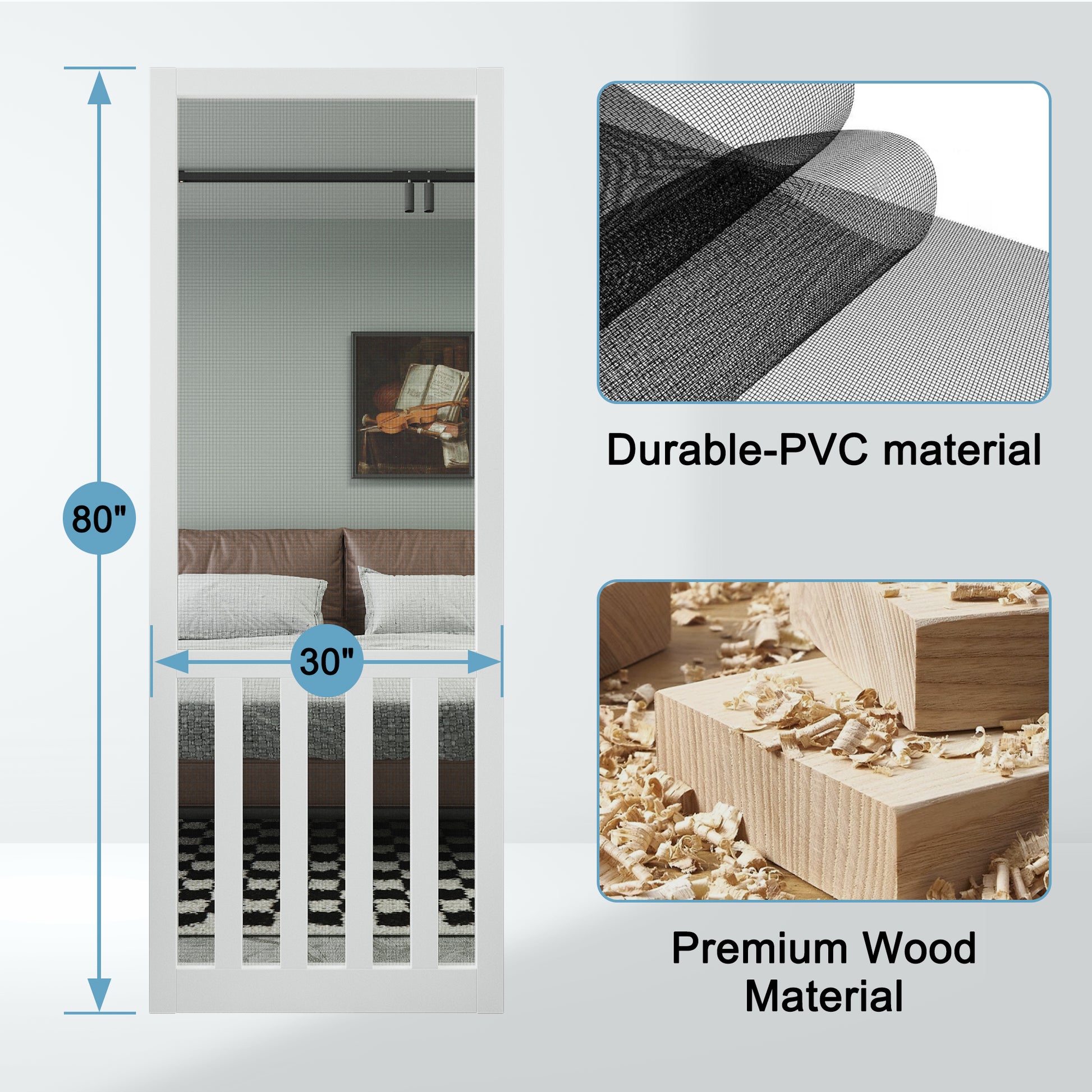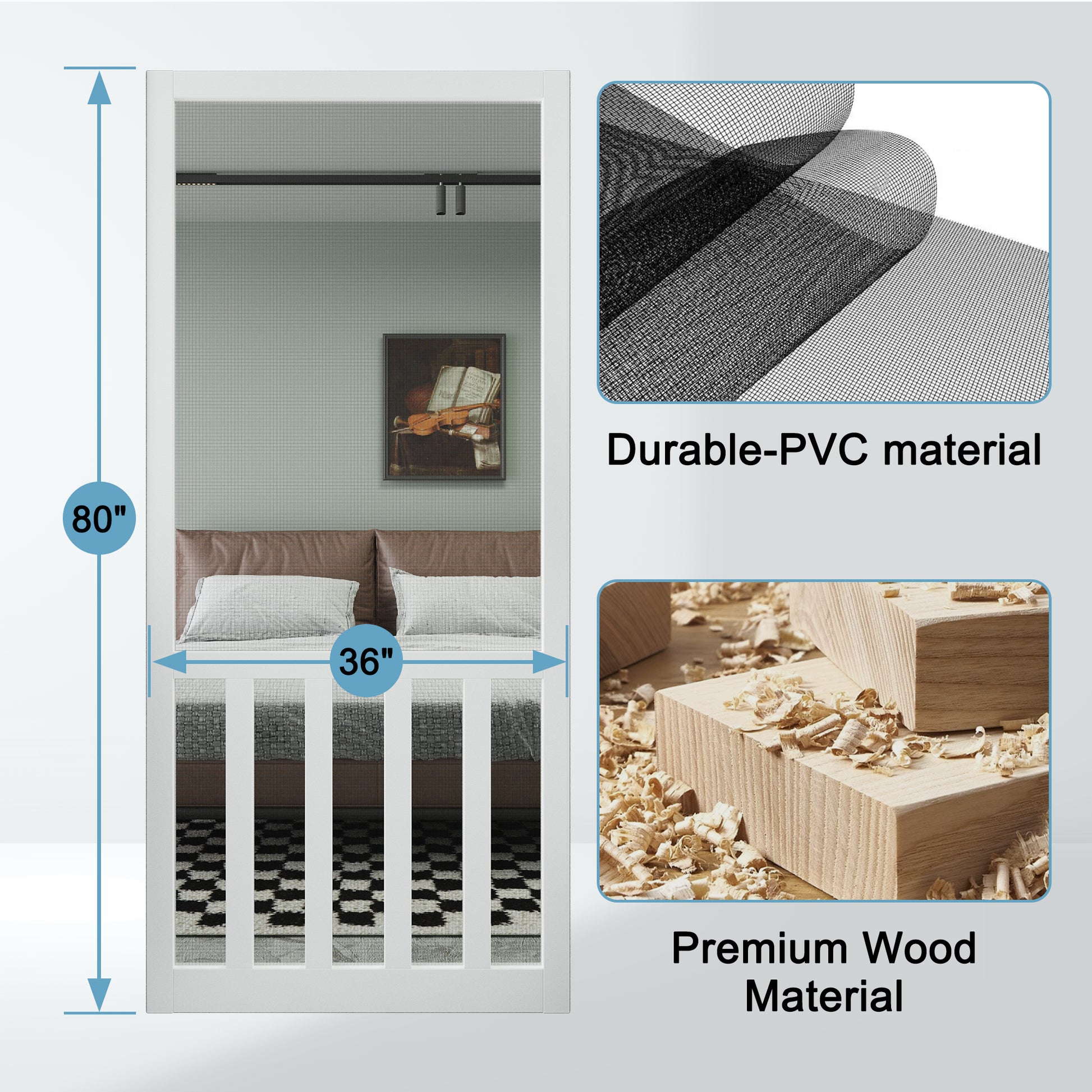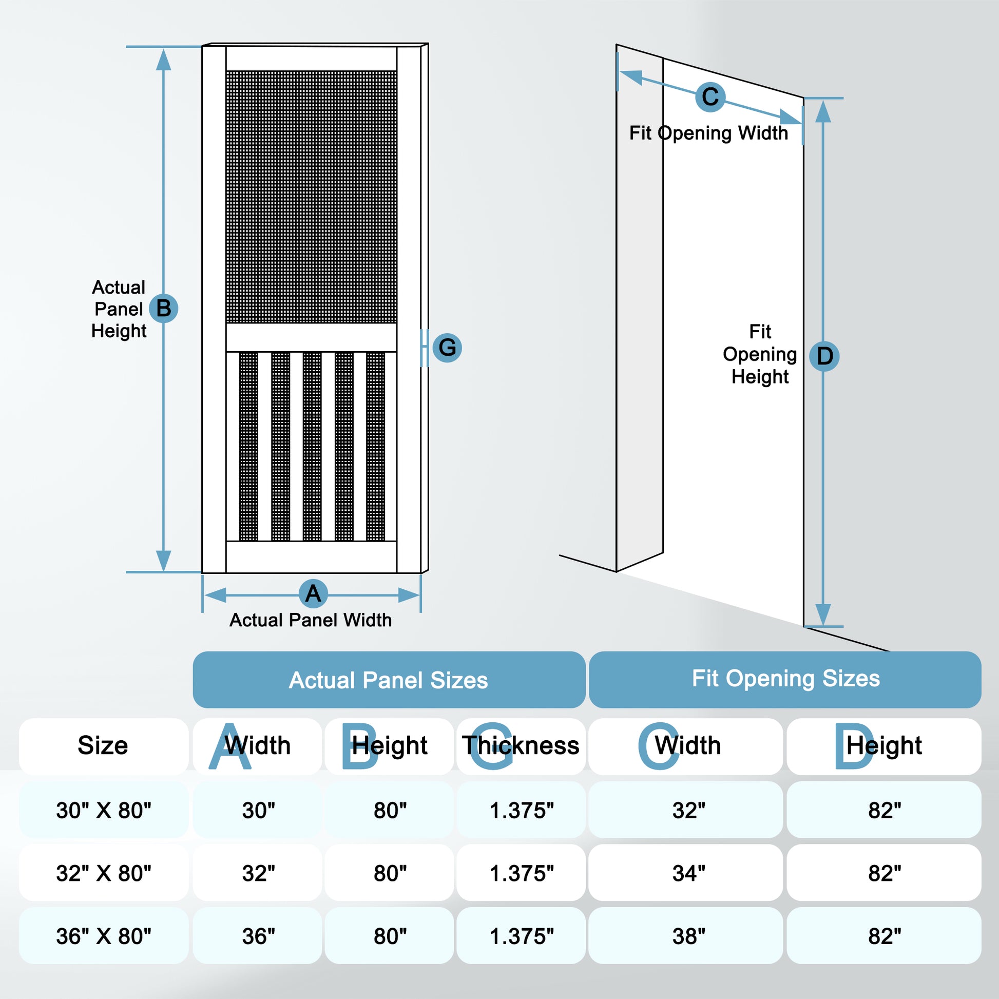 【Exact Measurements & Fit Guide】: panel dimensions: 30''/32''/36"W x 80"H x 1.38" thick Wooden Screen Door. Fits door openings measuring 32''/34''/38"W x 82"H - please ensure your doorway is slightly larger than the door slab for proper installation. Pro Tip: Use a tape measure to verify your opening before purchase! For visual reference.