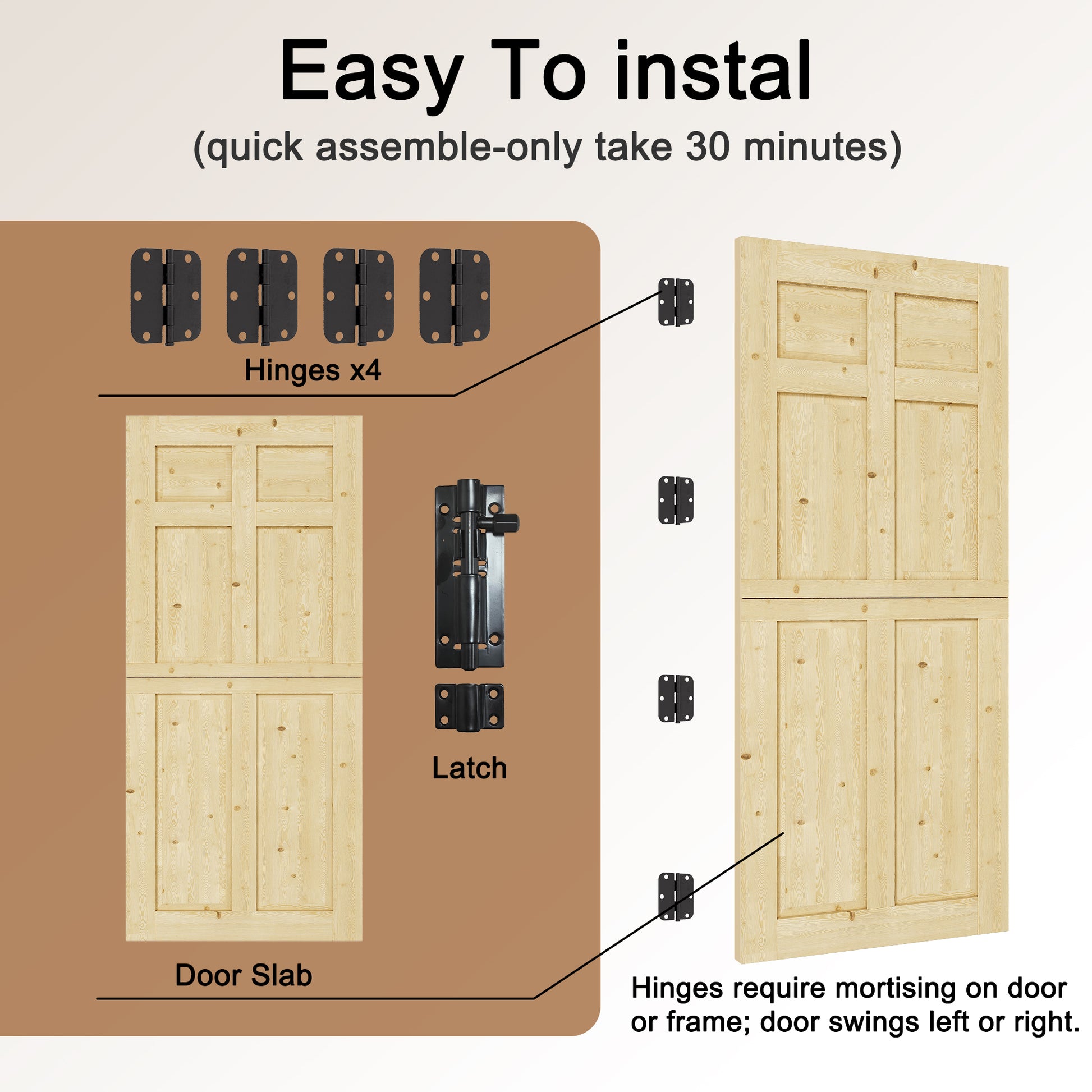 This door kit comes with 4 hinges, 1 latch, and the door slab. Assembly takes just 30 minutesโsimply mortise hinges into the door or frame, then attach. The door swings left or right for flexible use, making setup a breeze even for beginners.