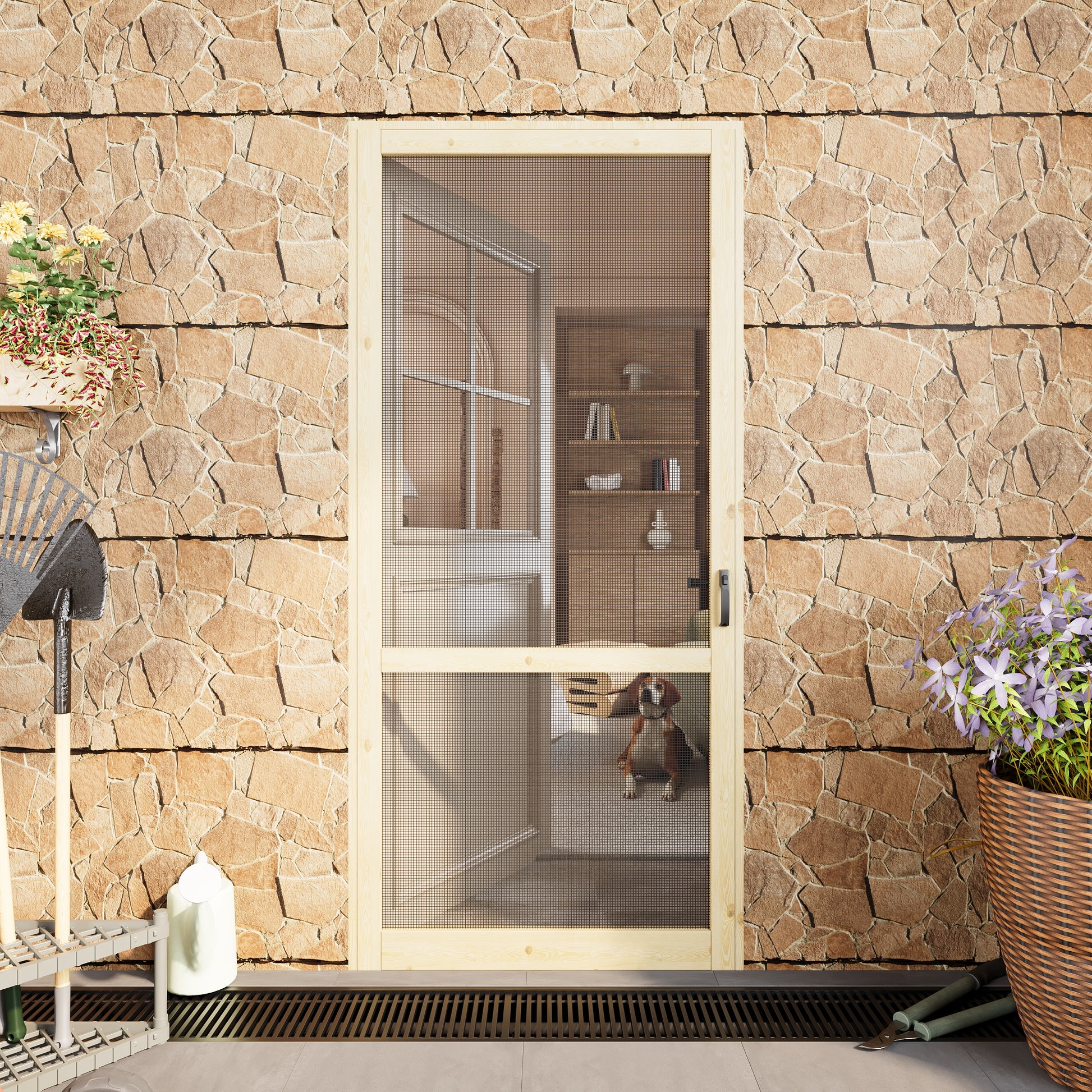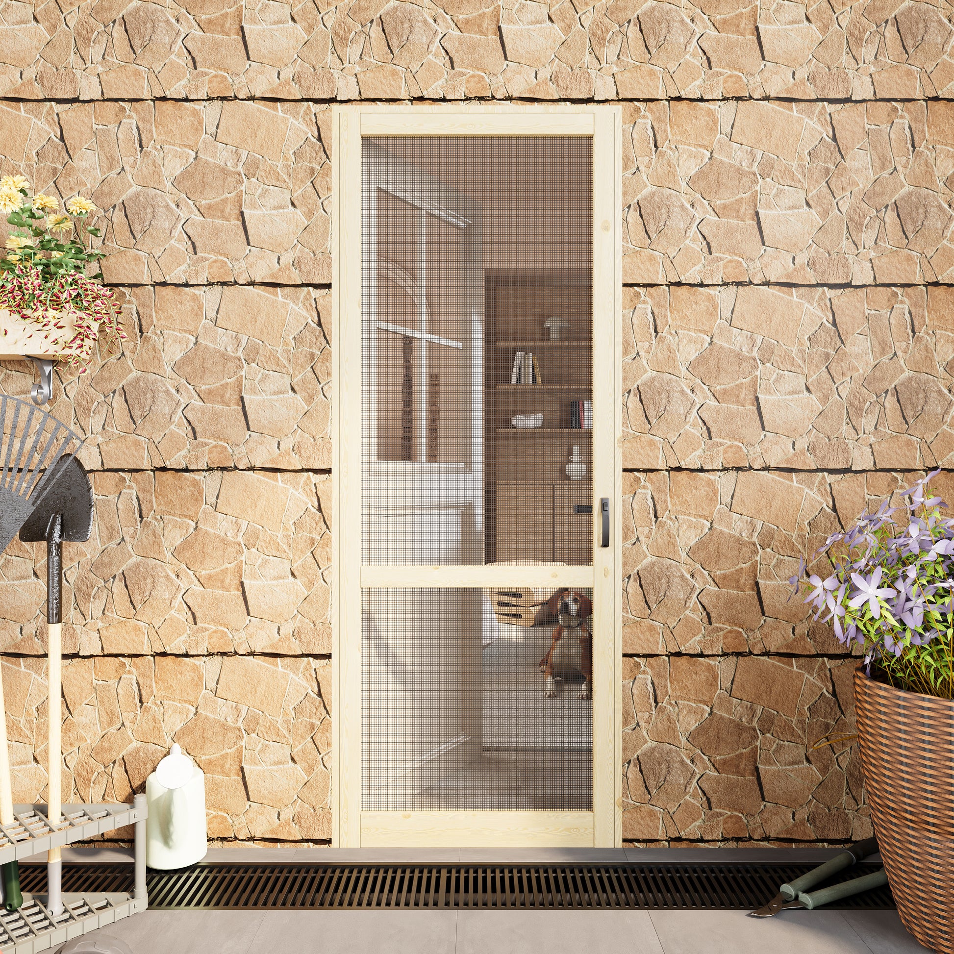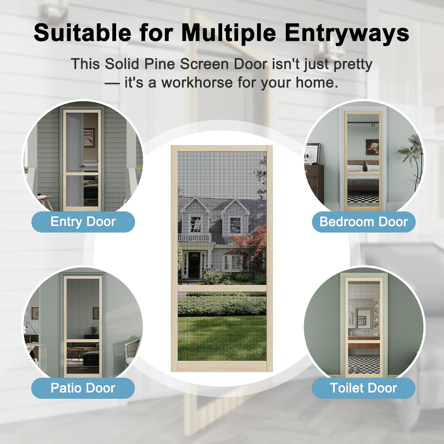 JUJUBON Front Wooden Screen Door for Swing Doors,Solid Pine French Style with Universal Hinged Gauze Mesh Screen Door for Exterior/Interior,Pre-Assembled Easy Installation